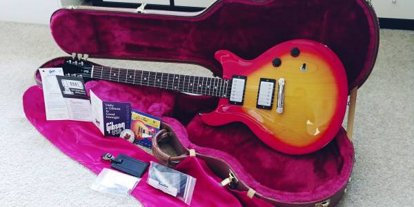 We have here a Gibson Les Paul DC Studio Cherry Sunburst in Excellent Condition.