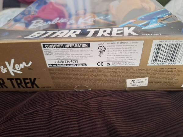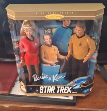 1996 star trek Barbie and Ken doll set. Please be advised 2 of the objects inside the box have come loose, still sealed, and not open. Up to the new owner to open and fix? Sold as is , box in decent shape.. local pickup only, no shipping, delivery... Cash only in person transaction