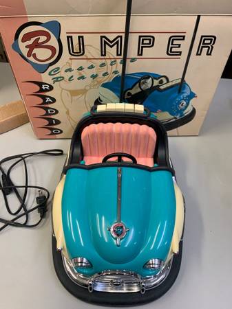 Vintage bumper cassette radio. check out the pictures of the actual item.
