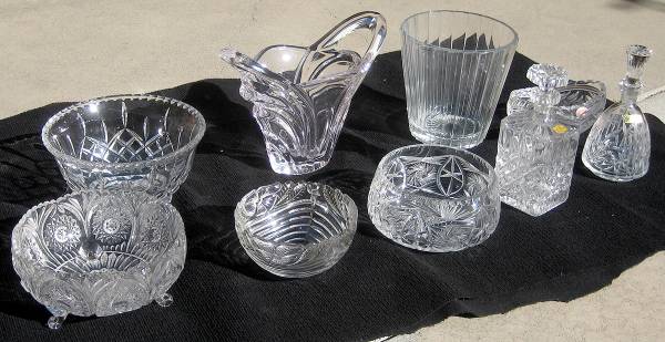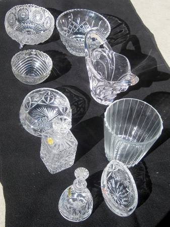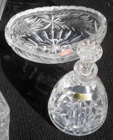 In immaculate condition, various pieces of hand-etched 24% lead crystalware. These have been taken great care of by a retired Hungarian lady and are in perfect condition. Not sure of the provenance of all of them but some were made in West Germany - before the fall of the Berlin Wall. Others may have been made in the traditional "Bohemian" crystalware making countries like Romania. Come take a look and make an offer on individual pieces of the whole set
