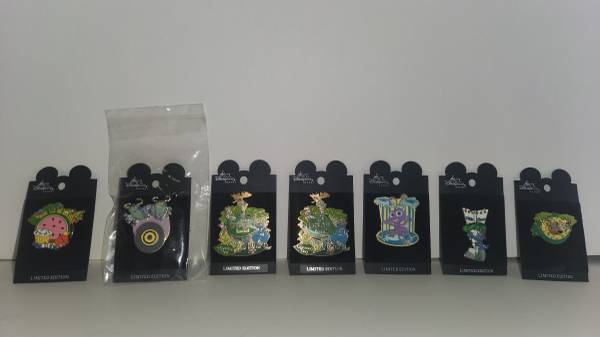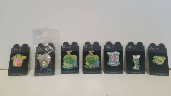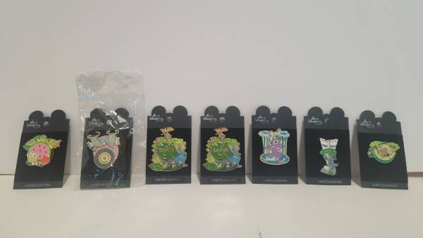 Disney California Adventure - Flik's Fun Fair Event 5 pin set 10-5-02 + 2 Bug's Land opening day pins 10-7-02. Land now Avengers Campus. Bug's Land was an area at Disney's California Adventure that was a themed land with attractions based off the 1998 animated movie A Bug's Life. It opened 10-7-02 and closed on 9-4-18. On 10-5-2002 they held an event for Passholders called Flik's Fun Fair. 5 of these pins are from that event. Each of these pins represent an attraction that was in this land. All 5 are Limited Edition of 1500. #1. PP15962- Flik's Flyer Slider pin. #2 PP15963- Francis Ladybug Boogie Spinner Pin. #3. PP15964 - Princess Dot Puddle Park pin. #4. PP15965 - Tuck and Roll's Drive 'Em Buggies. #5. PP15966 - Heimlich's Chew Train Spinner Pin. Also included are 2 Bug's Land opening day days . PP16160 - Limited Edition of 2500, released on 10-7-02 when the land opened. All pins are prestine and have not been displayed or traded, purchased by me at the park when they went on sale. Cash or Cash Apps Accepted. Local pickup Hollywood/Los Angeles area. Meet up in public place for inspection and exchange, or I can ship for a fee.