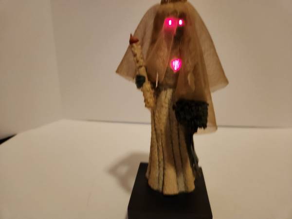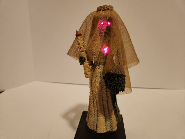 Haunted Mansion Bride Statue with lights and sounds. Bride statue on pedestal with Haunted Mansion logo. Purchased at the Disneyana store at Disneyland. This item is out of production and highly sought after. Eyes and heart blink red. Also says this, " Wecome Foolish mortals. I am your host, your Ghost host, the lord and master of this Haunted Mansion" with creepy music in the background. Takes 3 aaa batteries. Comes in original box. Cash or PayPal accepted. Local pickup Hollywood/ Los Angeles area or can ship for a fee.
