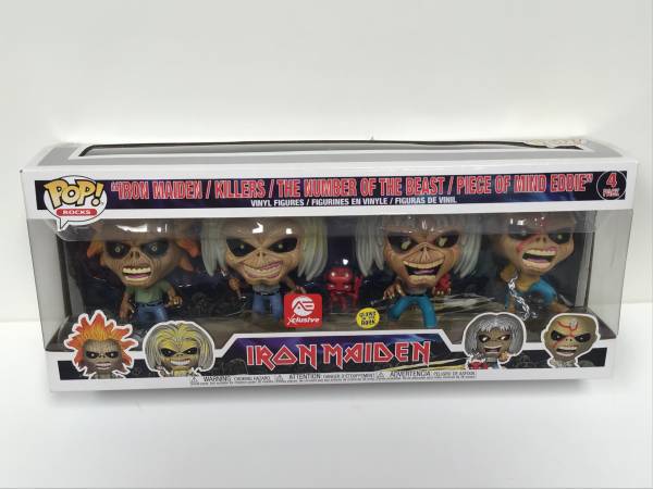 Funko Pop! Rocks Iron Maiden 4 pack Glows In The Dark Vinyl figures Eddie from the albums: Iron Maiden – Killers -–The Number Of The Beast – Piece Of Mind AE Xclusive Located near La Brea & W...