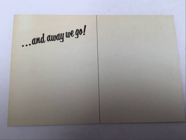 Back of postcard has “And Awaaay We Go!” printed on it, the title of Gleason’s comedy album and famous Honeymooners catchphrase