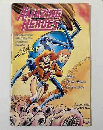 β CONDITION: Used, in good shape. Minor signs of use, corner bends, and scuffing. Amazing Heroes has three images cut out, but all pages are intact.