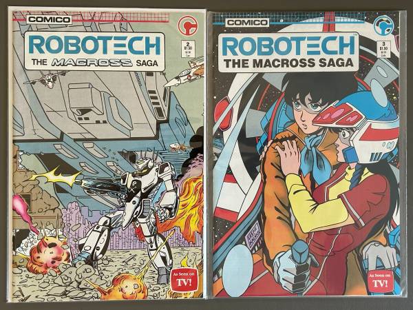 Macross #1 and five other Macross and Robotech comics published by Comico in 1984 to 1985, all in NM-M condition. Selling my personal collection, not a dealer. Macross #1 is in a mylar (mylite) sleeve, the rest are polybagged, key issues boarded as shown in the pictures.