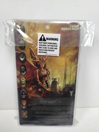 —Alternate male torso, alternate unhelmeted head, two armored shoulderpads, ponytail, helmet spike, shield, longsword & sash to hold longsword, spear, two back-port extenders (with different-gauge holes), and a small piece that fits in the middle back port that I believe can hold the sword or some additional accessory