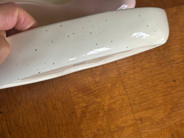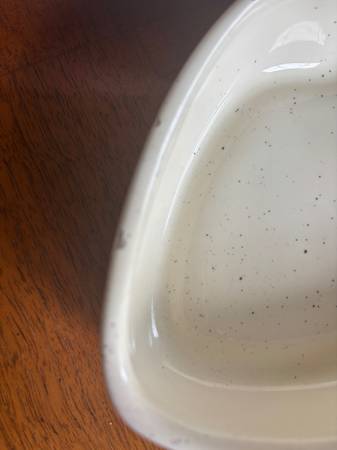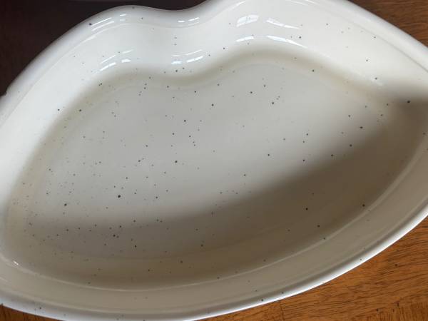 Dish measures approximately 9" long X 5 " wide X 3" tall and weighs about 1.5 pounds. This has been stored in a non-smoking home. Pick Up Mid Wilshire - please include your phone number for a faster response.