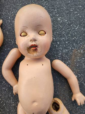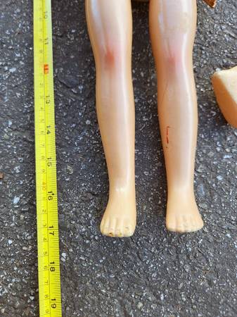 To identify a composition doll, look for a head and limbs made of a composite material, typically a mixture of glue and sawdust, which is sturdier than bisque or porcelain, and check for manufacturer's marks.