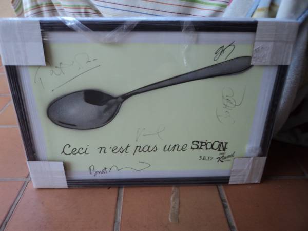 SPOON Full Band Signed Large Framed Poster 27" x 19" from The Jimmy Kimmel Show- Daniel, Fischel, Eno, Larios, Trokan - VERY RARE for $75 dollars. Hard to find sword with scabbard made in Germany...