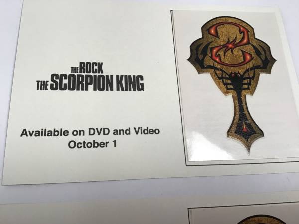 The Scorpion King Promo Art Card Temporary Tattoo The Rock Dwayne Johnson The Scorpion King movie DVD release promotional card Tattoo measures approx. 3" long x 2" wide Movie memorabilia Located...