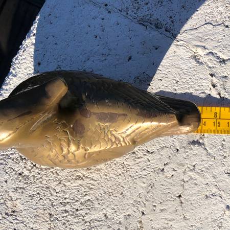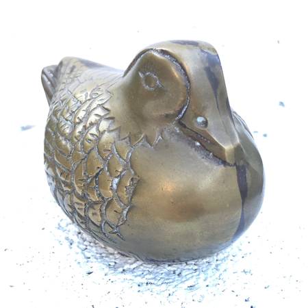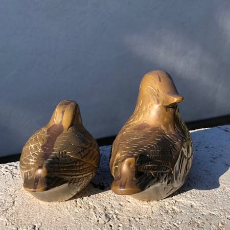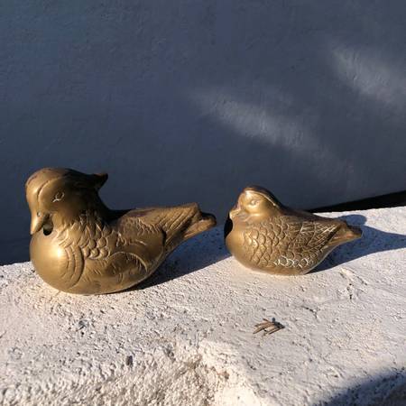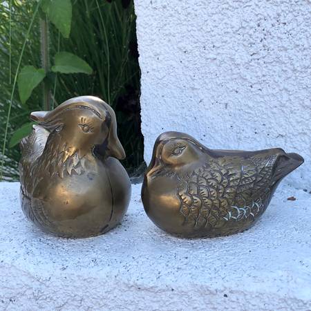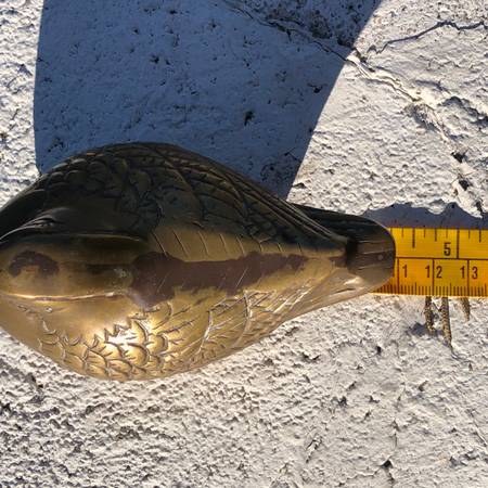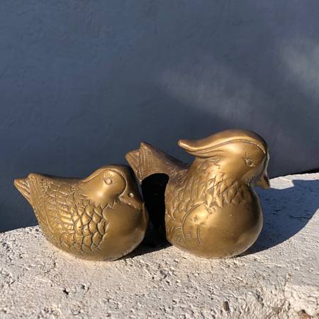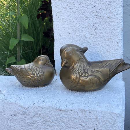 This vintage solid brass duck mother and child bird figurines; paperweight is a charming collectible piece that captures the nostalgia of mid-century decor. Made in Taiwan, the figurines feature intricate details and a timeless design that adds a touch of elegance to any space. The brass material gives it a classic and durable look, making it a unique and eye-catching addition to any collection of ducks or birds.