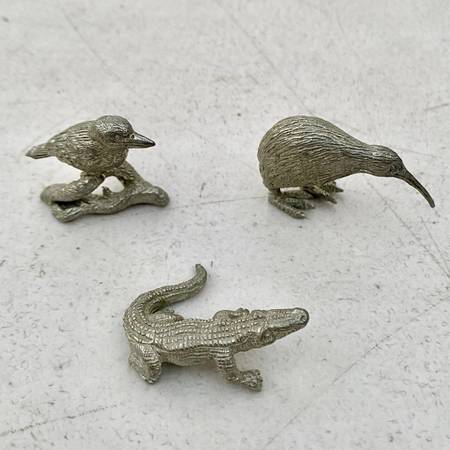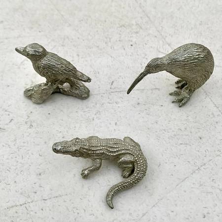 π± DETAILS: Vintage pewter animal figurines featuring an alligator (1-1/2β long), kiwi, and kookaburra (1β tall each). Beautifully crafted with fine detail and solid pewter construction. Perfect for collectors, animal lovers, or as a thoughtful gift.
