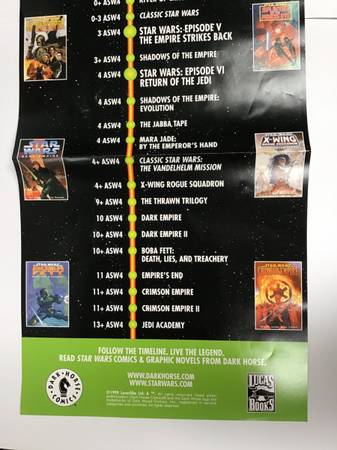 Vintage Star Wars Timeline Poster Live The Legend 1999 Dark Horse Comics Poster Trifold poster, stored folded Approx. 36” x 13” Located near La Brea & W Adams (90016) Shipping available