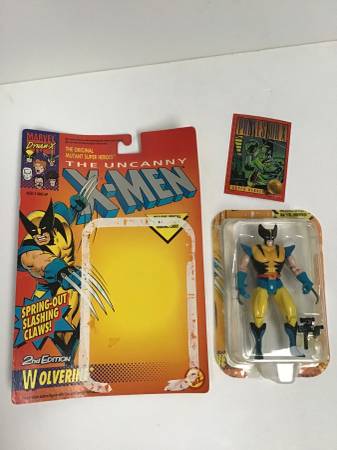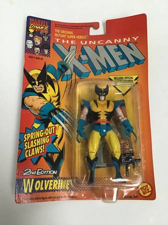 The Uncanny X-Men Wolverine Action Figure 2nd Edition All original accessories and trading card New, never opened, but blister has separated from the card 1992 Marvel ToyBiz Wolverine Approx. 6”...