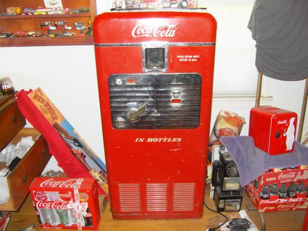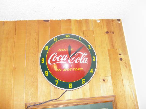 COKE NEON SIGN..950..COKE VENDO 27A ALL ORIG BUT CHROMD DOORS WOKS GREAT..2500..COKE BUBBLE CLOCK WORKS GOOD.200 COKE BUTTON 36" VERY NICE FEW CHIPS.. 950..