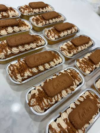 I have raving reviews and repeat customers to satisfy their sweet needs. We cater to the anywhere in Los Angeles and AV community. We offer delivery with a fee and minimum order and we can cater for any event including weddings, birthdays, school functions, etc. Prices are different for different items. Messsge me on instagram, TikTok or text me and I’ll be able to answer any questions you may have. Delicious, full of flavor, appealing to the eye, clean, licensed and ready for your future needs. You won’t be disappointed!! See photos for my delicious desserts. Thank you