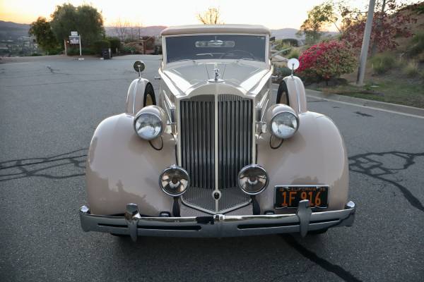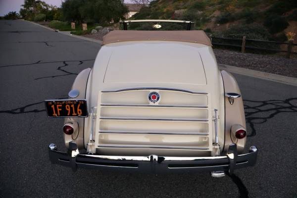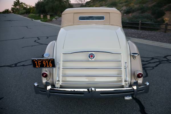1935 Packard 1201 Convertible. This Packard was completely restored back in the 1980's and still shows in beautiful condition. Comes with a Flathead eight cylinder engine and a three speed manual transmission. Equipped with manual brakes and manual steering. Four wheel drum brakes. This vehicle runs and drives great. Comes with the original wire wheels and hubcaps. Fender mounted spare tires. Bias ply tires with wide white walls. Underneath the vehicle is in beautiful condition. Has the compartments on the side and also comes with a rumble seat.