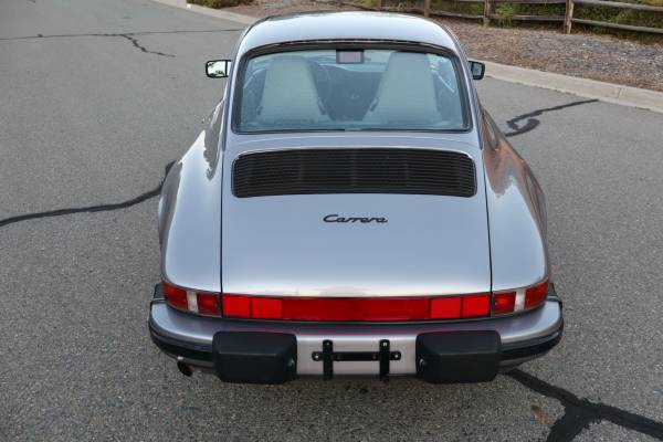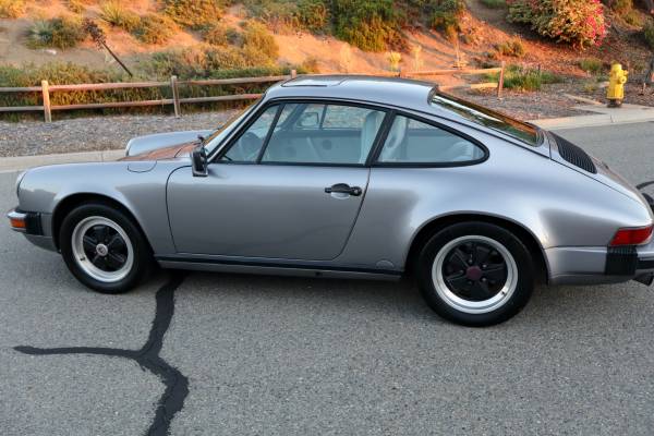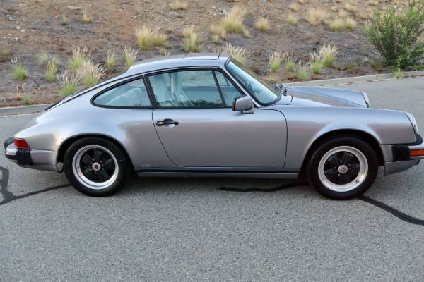 1988 Porsche 911 Carrera Coupe. This Porsche has just come out of long term ownership. It is equipped with a 3.2 liter six cylinder engine and a G50 five speed manual transmission. This Porsche runs and drives great. Mileage shows 171,964 but the odometer was repaired and estimated actual mileage is 183,000 miles. Equipped with air conditioning and blows cold. Four wheel disc brakes. Factory 16" Forged Alloy wheels with original spare. Exterior color is Diamond Blue Metallic and the interior is Silver Gray.