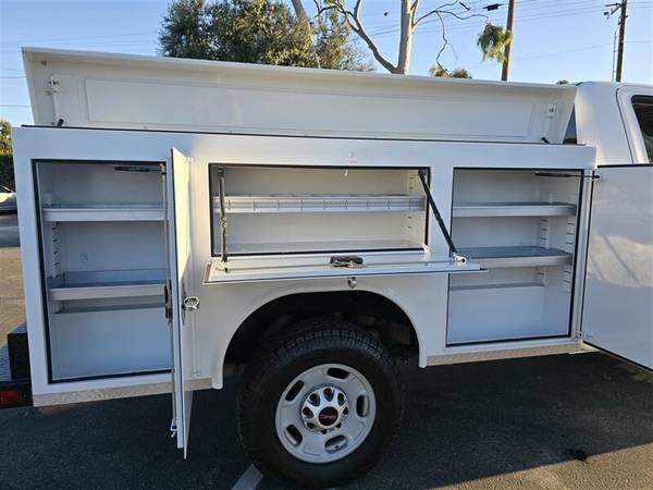 ALL TRUCKS ARE DRIVEN A MINIMUM OF 150 MILES BEFORE WE ADVERTISE THEM This 2022 GMC 2500 utility has a clean Carfax report with no accidents, engine is 6.6L V8 with a 8ft Royal utility bed with locks & keys to secure your tools & equipment.power windows,power locks, power mirrors,tilt,cruise control,am/fm radio with bluetooth ready & back up camera, seating for 3 persons,fresh new engine oil & filter, new air filter & cabin filter,new tires,truck has been inspected and serviced and is ready to go.All vehicles come with a warranty of 30 days or 1000 ( extended available) call us today for an appointment !