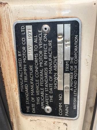 1971, 4 speed manual with O/D, wire wheels, soft top Hard top. The soft top is the one that came with the car from factory. ( Still very nice )