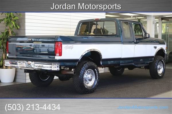 UP FOR GRABS IS A SUPER HARD TO FIND IN THIS SHAPE AND CONDITION AND LOW MILES LOCAL ONE WEST COAST OWNER SINCE NEW CLEAN TITLE AND CARFAX CERTIFIED 1996 FORD F-250 EXTENDED CAB LONG BED XLT WITH TURBO 7.3L POWERSTROKE AND 4X4, LOADED WITH ALL OPTIONS FROM THE FACTORY INCLUDING 6-PASSENGER SEATING, POWER WINDOWS, POWER LOCKS, POWER MIRRORS, REAR SLIDER, RUNNING BOARDS, TRAILER BRAKES, FACTORY 2-TONE PAINT, TOW PACKAGE, MANUAL LOCKING HUBS, COLD AC, TINTED WINDOWS, SPRAY IN BED LINER AND MUCH MORE. NO SIGNS OR RECORDS OF ANY ACCIDENTS EVER, NO MAJOR DENTS OR SCRATCHES AT ALL, LIKE NEW INTERIOR FREE OF ANY RIPS OR TEARS OR ANY BROKEN PLASTICS AT ALL, NON-SMOKER PREVIOUS OWNER, ZERO STAINS IN CARPET AND A PERFECT ORIGINAL DASH. WE JUST DID A NEW 4" BDS SUSPENSION LIFT KIT WITH ALL NEW FOX SHOCKS ALL THE WAY AROUND, 16" ALCOA WHEELS IN EXCELLENT CONDITION AND WE INSTALLED A NEW SET OF 33" BF GOODRICH KO3 10-PLY TIRES AS WELL. THE PAINT IS IN EXCELLENT CONDITION AND SHOWS NO SIGNS OF ANY FADING OR CLEAR COAT PEELING AT ALL. THIS F-250 HAS A SUPER CLEAN UNDER CARRIAGE, NEVER BEEN DRIVEN IN MUD OR SNOW AT ALL AND IT IS 100% RUST & CORROSION FREE, IT WAS ALWAYS PARKED INDOORS AND VERY WELL CARED FOR, THE ENGINE RUNS LIKE NEW AND HAS NO OIL LEAKS AT ALL, WE ALSO JUST DID A FULL SERVICE INCLUDING A FRESH OIL CHANGE / OIL FILTER / NEW AIR FILTER / BRAKE FLUID FLUSH / NEW FRONT BRAKES / NEW FUEL FILTER / NEW POWER DOOR LOCK SWITCH / FRESH AC CHARGE / COOLANT FLUSH AND MORE. THIS TRUCK IS IN COLLECTOR QUALITY GRADE, THE UNDER CARRIAGE IS AS CLEAN AS THEY GET SAME GOES FOR THE INTERIOR AND EXTERIOR, 100% RUST FREE, EXCELLENT MECHANICAL CONDITION, TONS OF UPGRADES AND A BED THAT LOOKS LIKE IT IS BRAND NEW SO HURRY AND BE THE LUCKY OWNER OF THIS RARE FIND.