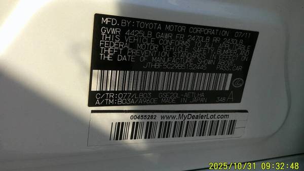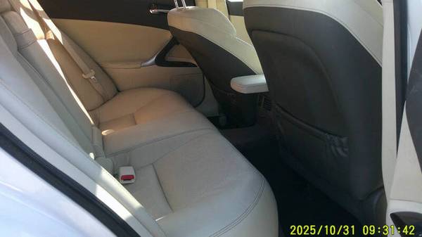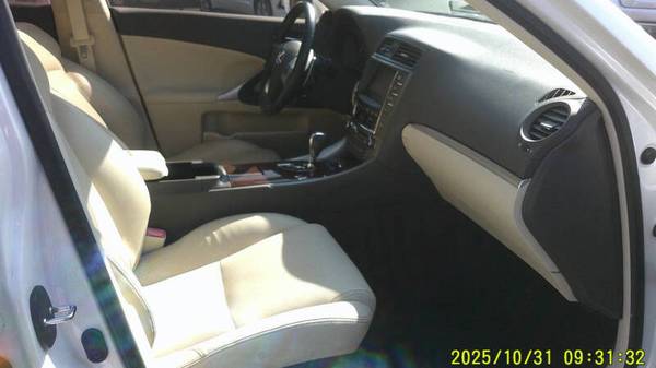 2011 Lexus IS 250 White at $9900 2.5 Liter V6 engine with automatic 6 speed transmission White exterior with beige color interior Navigation with back up camera. Text Tommy