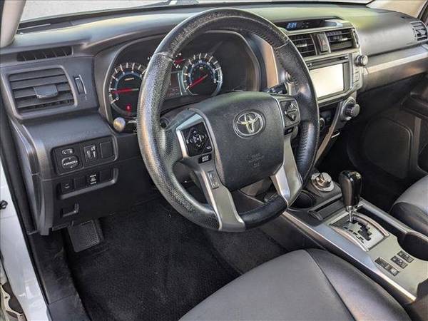 * Softex-Trimmed 50/50 Split Fold-Flat 3Rd Row * Sun/Moonroof * Navigation System * 3rd Row Seat * Rigid Running Boards * Carpet Floor Mats & Carpet Cargo Mat * Cargo Cross Bars * Exhaust Tip * Rear Spoiler * 30Th Anniversary Discount * 50 State Emissions * Black/Graphite; Softex Synthetic Leather Seat Trim * Premium Package W/Softex * Super WhiteThis vehicle includes a Money-Back Guarantee* and passed our precise inspection process. Best of all the price you see is the price you pay. No haggling. No back and forth. No pressure. And this price is so good it is guaranteed. *Money-Back Guarantee is valid for 5 days or 250 miles, whichever comes first. Subject to certain terms and conditions. See store for details. Some restrictions apply.Autonation Ford Valencia 661-255-6600 AutoNation Ford Valencia is pleased to be currently offering this 2015 Toyota 4Runner SR5 Premium with 118,957mi. This Toyota 4Runner offers all the comforts of a well-optioned sedan with the utility you demand from an SUV. Handle any terrain with ease thanks to this grippy 4WD. Whether you're on a slick pavement or exploring the back country, you'll be able to do it with confidence. One of the best things about this Toyota 4Runner is that it has low, low mileage. It's ready for you to truly break it in. Find the quickest driving route in this Toyota 4Runner SR5 Premium using the installed navigation system. This nav system is one of the easiest to use and will help get you where you need to go quickly! More information about the 2015 Toyota 4Runner: The Toyota 4Runner debuted in the U.S. more than 25 years ago. Now in its fifth generation, this midsized SUV uses the same platform as the FJ Cruiser and maintains its truck-like body-on-frame construction. A third row of seats is available and both the second and third rows fold completely flat without having to remove the headrests, providing a cavernous 90 cubic feet of cargo space. The optional sliding rear cargo deck can support up to 440 pounds. Interesting features of this model are incredible off-road handling and capability, smooth and comfortable ride, Great combination of truck-like performance and car-like comfort, and durability and strength