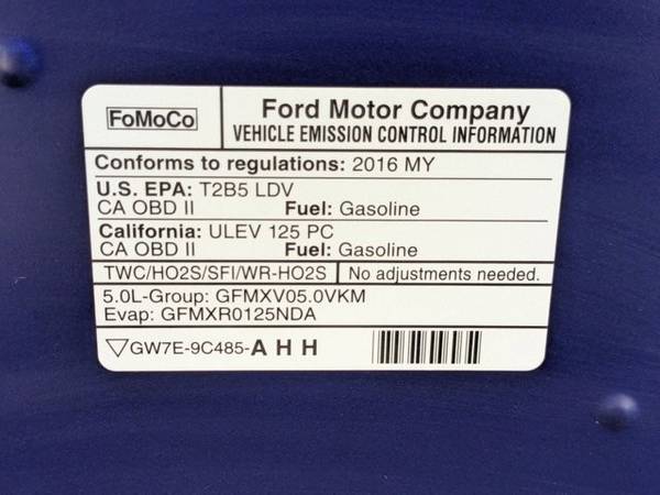 * Transmission: 6-Speed Selectshift Automatic * Black Accent Package * Keyless Start * Rear Spoiler * California Emissions System * Deep Impact Blue Metallic * Ebony; Cloth Sport Bucket Seats * Engine: 5.0L Ti-Vct V8 * Equipment Group 300AThis vehicle includes a Money-Back Guarantee* and passed our precise inspection process. Best of all the price you see is the price you pay. No haggling. No back and forth. No pressure. And this price is so good it is guaranteed. *Money-Back Guarantee is valid for 5 days or 250 miles, whichever comes first. Subject to certain terms and conditions. See store for details. Some restrictions apply.Autonation Ford Valencia 661-255-6600 AutoNation Ford Valencia is honored to present a wonderful example of pure vehicle design... this 2016 Ford Mustang GT only has 71,531mi on it and could potentially be the vehicle of your dreams! This Ford includes: ENGINE: 5.0L TI-VCT V8 (STD) 8 Cylinder Engine Gasoline Fuel *Note - For third party subscriptions or services, please contact the dealer for more information.* This low mileage Ford Mustang has barely been touched. It's the next best thing to buying new. This is about the time when you're saying it is too good to be true, and let us be the one's to tell you, it is absolutely true. More information about the 2016 Ford Mustang: The 2016 Mustang may still have one of the most recognizable names in the automotive world, but with its current design, it's far more than just a pretty face and a familiar name. It represents one of the best value propositions for buyers who just want the fastest car for their money. There is no longer a "slow" Mustang and a "fast" Mustang; there are just "fast" and "even faster" versions. The Mustang starts at just over $24,000, a price that undercuts most of its less powerful rivals, such as the Subaru BRZ. Even when optioned out beyond the $40,000 mark, the Mustang still represents a tremendous value. Interesting features of this model are improved fuel economy, Mustang mystique, modernized styling, sporty handling, powerful engines, and available as a convertible