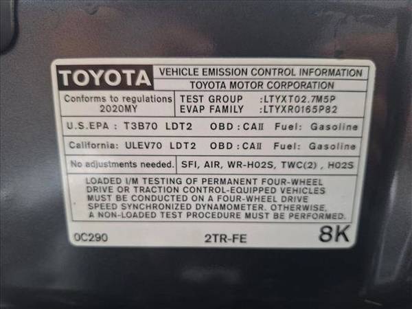 The following items have been reconditioned on this vehicle: new battery! * 5" Chrome Oval Tube Steps * All Weather Floor Liner & Door Sill Protector Pkg * Exhaust Tip * 50 State Emissions * Cement; Fabric Seat Trim (Fc) * Magnetic Gray Metallic * Sr5 PackageThis vehicle includes a Money-Back Guarantee* and passed our precise inspection process. Best of all the price you see is the price you pay. No haggling. No back and forth. No pressure. And this price is so good it is guaranteed. *Money-Back Guarantee is valid for 5 days or 250 miles, whichever comes first. Subject to certain terms and conditions. See store for details. Some restrictions apply.Looking for a clean, well-cared for 2020 Toyota Tacoma 2WD? This is it. This Toyota includes: EXHAUST TIP (PPO) ALL WEATHER FLOOR LINER Floor Mats MAGNETIC GRAY METALLIC *Note - For third party subscriptions or services, please contact the dealer for more information.* This 2020 Toyota Tacoma 2WD has such low mileage it has been parked more than driven. There is no reason why you shouldn't buy this Toyota Tacoma 2WD SR. It is incomparable for the price and quality. The quintessential Toyota -- This Toyota Tacoma 2WD SR speaks volumes about its owner, about uncompromising individuality, a passion for driving and standards far above the ordinary. Click for more information, Call to set up an appointment, or better yet, come on down to Toyota of Cerritos and get behind the wheel for a test drive today!