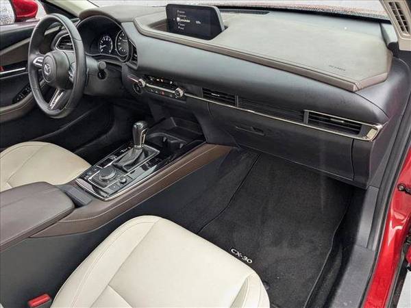 * Soul Red Crystal Metallic Paint * Sun/Moonroof * Leather Seats * Navigation System * High Wall All-Weather Floor Mats * Cargo Tray * Lane Keeping Assist * Keyless Start * Rear Spoiler * Heads-Up Display * Soul Red Crystal Metallic * White; Leather Seat Trim * Bose Audio CreditThis vehicle includes a Money-Back Guarantee* and passed our precise inspection process. Best of all the price you see is the price you pay. No haggling. No back and forth. No pressure. And this price is so good it is guaranteed. *Money-Back Guarantee is valid for 5 days or 250 miles, whichever comes first. Subject to certain terms and conditions. See store for details. Some restrictions apply.AutoNation Chrysler Dodge Jeep Ram ValenciaCall 661-219-0600Thank you for your interest in this 2022 Mazda CX-30 at AutoNation Chrysler Dodge Jeep Ram Valencia. This pre-owned vehicle is one of thousands in our massive used car inventory at AutoNation. With this exceptional SUV, you'll get "sport," "utility," and comfort. This wonderfully fuel-efficient vehicle offers a supple ride, quick acceleration and superior styling without sacrificing MPGs. Few vehicles can match the safety and comfort of this AWD Mazda CX-30 2.5 S Premium Package. With enhanced performance, refined interior and exceptional fuel efficiency, this AWD Mazda is in a class of its own. A Mazda with as few miles as this one is a rare find. This CX-30 2.5 S Premium Package was gently driven and it shows. Intricately stitched leather and ergonomic design seats are among the details in which test drivers say that Mazda CX-30 2.5 S Premium Package is in a league of its own If, upon choosing the road less traveled you find yourself lost, relax and remember this beautiful car has navigation. AutoNation Chrysler Dodge Jeep Ram ValenciaCall 661-219-060023820 Creekside Dr. Valencia Ca 91355