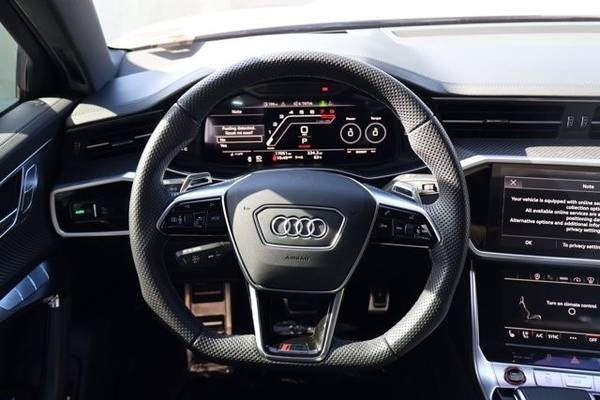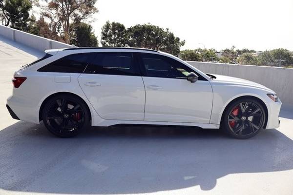 * Dual Moonroof * Glacier White Metallic * Leather Seats * Navigation System * Keyless Start * Rear Spoiler * Cooled Front Seat(S) * Black; Leather Seat TrimThis vehicle includes a Money-Back Guarantee* and passed our precise inspection process. Best of all the price you see is the price you pay. No haggling. No back and forth. No pressure. And this price is so good it is guaranteed. *Money-Back Guarantee is valid for 5 days or 250 miles, whichever comes first. Subject to certain terms and conditions. See store for details. Some restrictions apply.2023 Audi RS6 Avant Black Optic Ceramic Brakes Executive & Driver Assistance Packages RS Sport Exhaust 16,991 Miles This listing offers a 2023 Audi RS6 Avant , finished in Mythos Black over Black Valcona Leather , showing 16,991 miles and equipped with a deep list of factory optionsincluding Carbon Ceramic Brakes with Red Calipers , Black Optic Package , Executive Package , Extended Leather Package , Driver Assistance Package , RS Sport Exhaust , and more. Power comes from the legendary 4.0-liter twin-turbocharged V8 paired with an eight-speed Tiptronic automatic transmission and quattro all-wheel drive , delivering the blend of performance, luxury, and everyday usability that has made the RS6 Avant one of the most coveted modern super-wagons. This example retains all factory equipment, has been enthusiast-owned, and remains unmodified aside from its OEM optional equipment. Factory Options & Packages Carbon Ceramic Brakes w/ Red Calipers Massive braking capability with reduced fade and lighter rotational mass, paired with red RS calipers for an aggressive aesthetic. Executive Package Includes: Soft-close doors Remote park assist Heated rear seats Heads-Up Display Power soft-closing tailgate Extended vehicle conveniences and interior upgrades Extended Leather Package Hand-stitched leather surfaces across upper dashboard, door armrests, center console sides, and other interior touchpoints. Driver Assistance Package Adaptive Cruise Assist with Lane Guidance Traffic Jam Assist Intersection Assist Audi Pre Sense 360 safety systems Black Optic Package High Gloss Black exterior elements Black roof rails Black mirror housings Black window surrounds Aggressive de-chromed look factory-finished 22 High-Gloss Black Wheels OEM sport wheels providing a bold profile and paired to high-performance tires. RS Sport Exhaust System Enhances the V8s signature soundtrack with adjustable valving and deeper, more engaging tone. Standard Equipment Highlights (2023 RS6 Avant) Performance & Drivetrain 4.0L Twin-Turbo V8 591 hp / 590 lb-ft 8-speed Tiptronic automatic quattro AWD RS-tuned adaptive air suspension All-Wheel Steering Audi Drive Select modes (including RS1 & RS2) Launch control Center locking differential Exterior & Lighting LED headlights w/ Audi Laser Light (when equipped) LED taillights w/ dynamic turn signals Power-folding heated exterior mirrors Power tailgate RS bodywork, widened fenders, dual oval RS exhaust outlets Interior & Comfort Valcona leather RS sport seats w/ honeycomb stitching Heated & ventilated front seats Tri-zone automatic climate control Power panoramic sunroof Power steering column Ambient LED interior lighting Heated RS flat-bottom steering wheel w/ paddle shifters Technology & Safety Audi Virtual Cockpit Plus MMI Navigation Plus w/ MMI Touch Response Wireless Apple CarPlay & Android Auto Bang & Olufsen 3D Premium Sound Top-view 360 camera system Audi Side Assist (blind-zone monitoring) Front & Rear Parking Sensors Pre Sense Front & Rear Keyless entry and push-button start Condition The RS6 Avant presents beautifully, with glossy paintwork, clean wheels, and a well-kept interior showing only minimal signs of normal use. All driver-assistance systems, comfort features, and RS performance components function as intended. The carbon ceramics show the expected long-life surfaces typical of low-mileage use, and the RS Sport Exhaust delivers the proper factory growl. Summary A high-spec, enthusiast-grade 2023 Audi RS6 Avant with only 16,991 miles , loaded with the most desirable factory packages: Ceramic Brakes , Black Optic Package , Executive Package , Driver Assistance Package , Extended Leather , 22 Black Wheels , and the RS Sport Exhaust . With its blend of supercar performance, daily driver comfort, and wide-shouldered wagon practicality, this RS6 Avant represents one of the most compelling long-roof performance cars on the market.