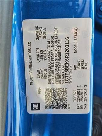 * Convenience Package * Dynamic Blue Metallic * Lane Keeping Assist * Keyless Start * License Plate Kit; Front * 11.3" Diagonal Premium Gmc Infotainment System * Air Conditioning; Dual-Zone Automatic Climate Control * Defogger; Rear-Window Electric * Elevation Preferred Equipment Group * Emissions; California State Requirements * Engine; Turbomax * Fog Lamps; Front Led * Jet Black; Cloth Seat Trim * Lighting; Interior; Overhead Courtesy Dual Reading Lamp * Mirror; Inside Rearview Auto-Dimming * Mirrors; Outside Heated Power-Adjustable * Multistow Tailgate; Storage Compartment * Power Outlet; 120-Volt Rear Of Console * Power Outlet; Bed Mounted; 120-Volt * Rear Axle; 3.42 Ratio * Remote Vehicle Starter System * Seat; Front Bucket * Steering Column; Tilt And Telescopic; Manual * Tailgate Keyed Cylinder Lock * Tailgate; Ez-Lift And Lower * Transmission; 8-Speed Automatic; 8L80 * Usb Ports; 2; Center Console; Charge-Only; Rear * Visors; Driver And Front Passenger Illuminated Sliding Vanity Mirrors * Wheels; 18" X 8.5" (45.7 Cm X 21.6 Cm) Dark Grey Painted Aluminum * Window; Rear-Sliding; ManualThis vehicle includes a Money-Back Guarantee* and passed our precise inspection process. Best of all the price you see is the price you pay. No haggling. No back and forth. No pressure. And this price is so good it is guaranteed. *Money-Back Guarantee is valid for 5 days or 250 miles, whichever comes first. Subject to certain terms and conditions. See store for details. Some restrictions apply.