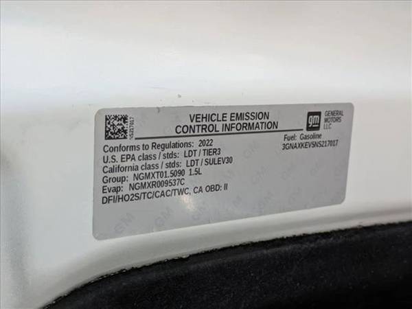 The following items have been reconditioned on this vehicle: new pair of tires and new battery! * Confidence & Convenience Package * Infotainment Package * Advanced Safety Package * Navigation System * Lane Keeping Assist * Keyless Start * License Plate Front Mounting Package * Adaptive Cruise Control * Air Conditioning; Dual-Zone Automatic Climate Control * Audio System; Chevrolet Infotainment 3 Plus System With Connected Navigation; 8" Diagonal Hd Color Touchscreen * Axle; 3.50 Final Drive Ratio * Driver Confidence Ii Package * Driver Convenience Package * Emissions; California State Requirements * Engine; 1.5L Turbo Dohc 4-Cylinder; Sidi; Vvt * Front And Rear Park Assist * Hd Surround Vision * Jet Black; Premium Cloth Seat Trim * Lane Change Alert With Side Blind Zone Alert * Liftgate; Rear Power * Lt Preferred Equipment Group * Mirrors; Outside Heated; Power-Adjustable; Manual-Folding With Integrated Turn Signal Indicators * Power Outlet; 120-Volt; Located On The Rear Of Center Console * Rear Cross Traffic Alert * Remote Start * Seats; Front Bucket * Seats; Heated Driver And Front Passenger * Steering Wheel; Heated * Steering Wheel; Leather-Wrapped 3-Spoke * Summit White * Tires; P225/65R17 All-Season Blackwall * Transmission; 6-Speed Automatic; Electronically-Controlled With Overdrive * Usb Data Ports; 2 * Usb Data Ports; 2; Located In The Front Console Bin * Wheels; 17" (43.2 Cm) Aluminum * Not Equipped With Lane Change Alert With Side Blind Zone Alert And Rear Cross Traffic Alert; See Dealer For DetailsAt BMW of Buena Park we have over 500 New and Used vehicles to choose from. Our Client Advisors will ensure that you have a great buying experience and answer all your questions along the way, BMW OF BUENA PARK WILL BUY YOUR VEHICLE REGARDLESS IF YOU PURCHASE ONE FROM US OR NOT!!! CALL NOW (714) 994-8100 PAYING TOP DOLLAR AND PROVIDING YOU WITH A CHECK ON THE SPOT IS WHAT WE DO!! 6750 AUTO CENTER DRIVE, BUENA PARK CA 92621. (OFF THE 5 FREEWAY AT AUTO CENTER DRIVE) We look forward to serving you soon. THANKS!!!