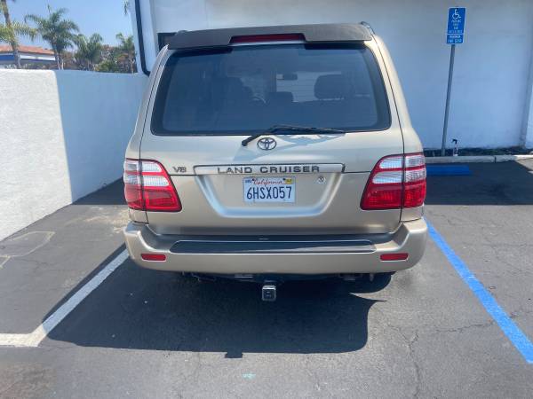 CLEAN CAR FAX. YES, ONLY 95K ORIGINAL MILES. BURN AND RAISE IN CALIFORNIA.WE JUST DID THE TIMING BELT AND WATWER PUMP AND TENSIONER. SERVICE. TO BLELVIE THE CONDITION OF THE SUV. WE JUST INSTALLED NEW WHEELS AND TIRES. WHEN YOU SEE IT YOU WILL LOVE IT. HARD TO FIND.DO NOT WAIT THIS WILL SELL FAST.WE FINANCE SLOW CREDIT AND WE ACCEPT TRADES IN. CALL DAVID 562-209-8211, Disclaimer; Price excludes government fees and taxes, any finance charges, any dealer document preparation charge, and any emission testing charge. The list price is based on cash purchase. Please note, the actual mileage at the time of delivery may be higher than stated on the ad due to local test drives . 2003 Toyota Land Cruiser Base is the ultimate combination of power, durability, and luxury. With a 4.7L V8 engine producing an impressive 235 horsepower and 320 ft. lbs. of torque, this vehicle is ready to conquer any road or terrain with ease. The smooth 5-speed automatic transmission ensures a seamless driving experience, making this SUV perfect for both city roads and off-road adventures.