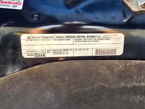 Power Door Locks, Air Conditioning, Dual Air Bags, Power Steering, Cruise Control, AM/FM Stereo, F&R Side Air Bags, Tilt Wheel, F&R Head Curtain Air Bags, Power Sliding Rear Window, Keyless Entry, CD/MP3 (Single Disc), SiriusXM Satellite, 2WD, Stability Control, Power Windows, Alloy Wheels, Automatic, 6-Spd, ABS (4-Wheel), V8, Flex Fuel, 4.7 Liter, Bluetooth Wireless, UConnect Pickup Pickup 8 0 4 2WD V8, Flex Fuel, 4.7 Liter Black Flexible Fuel Black Automatic, 6-Spd
