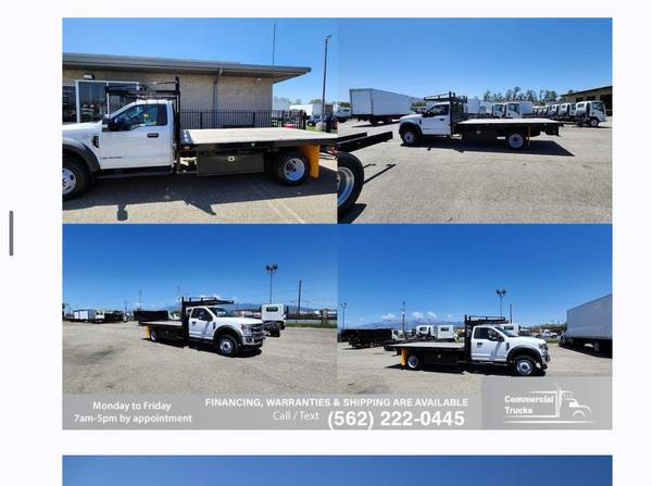 AVAILABLE DELIVERY - FINANCING- WARRANTIES NATIONWIDE Business /Commercial financing may be available subject to credit approval - First time buyers ok with established personal credit- Downpaymnet required on approved credit - available to businesses and individuals - based on credit history MOST of our Trucks are ready for work!!! toll free 877-259-5010 call /text 562--222--0445 hablamos Espanol Financing-warranties- shipping Prices + tax lic.reg.dealer fees AVAILABLE DELIVERY - FINANCING- WARRANTIES NATIONWIDE ;financing may be available subject to credit approval - Financing-warranties- shipping-/DELIVERY STARTING@$3/MILE TO MOST PLACES MOST of our Trucks are ready for work!!! Commercial Financing available On Approved Credit for seasoned truck buyers OR FOR NEW FIRST TIME TRUCK BUYERS with up to or around 50% down.