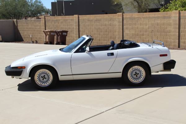 1980 triumph tr7 a arizona car that was restored in 2017 for $25000 SELLING FOR 1/2 OF RESTORATION COSTS,ITS MINT,we do not know if the miles are actual as a car that old is exempt on title for miles for age,it looks like a 8000 actual miles but we do not garantee it,the car speaks for its self,it has the origional motor and stronberg carbs and origional transmission,it has had cruise control added at some time and a custom sterio with back up camera,it has enki wheels with 90% tires see photos,seats are not torn or ripped,top is a hartz cloth top,lights go up and down and work,body is perfect with zero rust or repair paint is excellent,windshield is crack and chip free,it has a full toueau cover in the trunk,it has owners manual and spec book,rims are perfect no curb rach,it runs and drives perfect,tr owners will love this car,its priced $10995please calls only no emails or texts till we talk first,yor will be blocked to many scammers out there,real buyers call,get in touch with us at 602-820-7395 im a dealer collector in phoenix and have been in business for 58 years,buy with coonfidence,i buy,sell,trade,offer inspections and shipping,i have sports cars,corvette,tesla,bentley,muscle cars street rods,55-57 chevys 50s pick ups,to see 50-100 photos go to www.classicsportsandtrucks.net to see all photos,602-820-7395