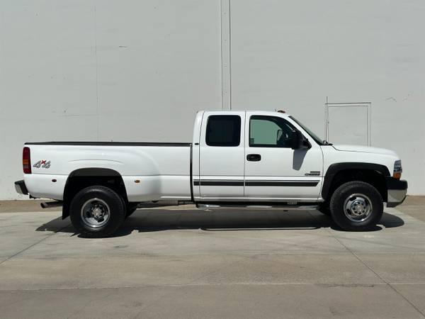 This 2002 Chevrolet Silverado 3500 Diesel is an absolute powerhouse on wheels! With the mighty Duramax 6.6L Diesel Turbo V8 engine under the hood, delivering a jaw-dropping 300hp and 520ft. lbs. of torque, this truck is built to conquer any road with ease. The Allison Automatic transmission ensures smooth shifting and optimal performance, while the Camper/Towing Package and Skid Plates make this beast ready for any adventure. Equipped with a 5-Speed Automatic Transmission and a 6.6L Turbocharged Diesel V8 engine, this Silverado means serious business. The exterior shines in a sleek Summit White, complemented by a Graphite interior that exudes style and comfort. With less than 86,000 miles on the odometer, this one-owner truck has been driven an average of less than 4,000 miles per year, ensuring it's got plenty of life left to offer. In excellent overall condition, this Silverado 3500 Diesel is a rare find that won't last long. Don't miss your chance to own a true legend in the world of trucks. Drive it home today and experience the power, performance, and reliability of Chevrolet's finest workhorse.
