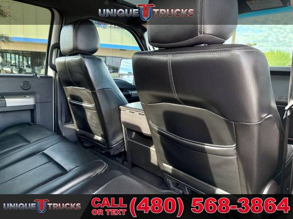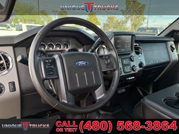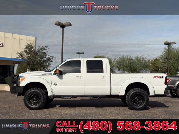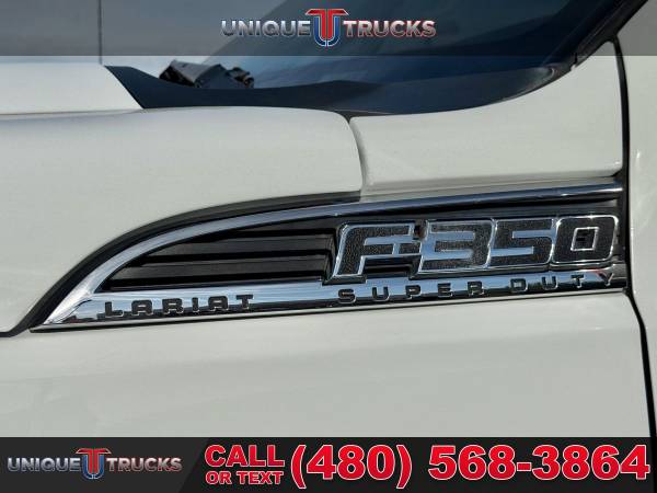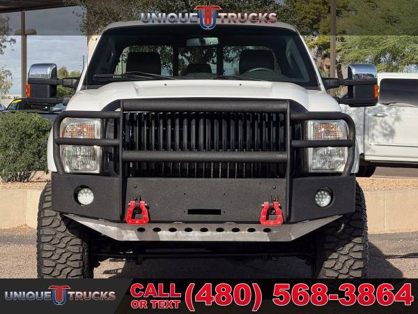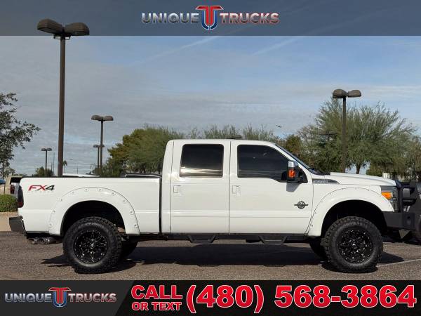 The Oxford White exterior on this lifted 2013 Ford F-350 SuperDuty Lariat Crew Cab 4x4 gives the truck a clean, sharp look right from the start. The color-key matching fender flares tie everything together, and the custom Ranch Hand front bumper adds a bold front-end style. The custom gloss black grille brings the whole look together, making this truck stand out the moment you see it.Inside, the jet black leather interior gives the cabin a smooth and comfortable feel. The full moonroof adds extra light and an open feel that makes every drive more enjoyable. The layout is simple and easy to use, giving you a clean setup that fits the truck’s strong look.This truck comes with a custom level kit that gives it the right stance without going over the top. It sits on brand new tires wrapped around gloss black wheels, giving it a clean and eye-catching look from every angle. The setup not only looks good but also adds better ground clearance and a solid ride.Power comes from the strong 6.7-liter PowerStroke V8 turbocharged diesel engine paired with a smooth 6-speed automatic transmission. This setup gives you great tow power, smooth acceleration, and steady performance whether you’re on the road or off the pavement. It delivers the kind of pull and control people look for in a diesel F-350.Inside the cabin, you get dual-zone automatic climate control that lets the driver and passenger set their own temperature. This makes long drives more comfortable and keeps everyone happy no matter the weather. Everything is simple to use with easy-to-reach controls.You also get a leather-wrapped steering wheel with built-in controls, making it easy to handle your audio, phone, and other settings without taking your hands off the wheel. It adds comfort and convenience every time you drive.The Lariat Ultimate Package adds even more features, including heated and cooled front seats that keep you comfortable year-round. These seats warm up fast in the winter and cool down quickly in the summer, making the truck easy to enjoy in any climate.This F-350 also comes with the FX4 Off-Road Package, giving you skid plates, off-road tuned suspension, and extra features that help the truck handle rough roads. The remote start system adds extra convenience, letting you start the truck from a distance so it’s ready before you even climb in.This lifted diesel 2013 Ford F-350 SuperDuty Lariat is fully serviced and ready to go. It’s clean, eye-catching, and ready to turn heads everywhere it goes. The truck is set up for its next owner and offers the kind of features that make it ready for work, play, or daily use.At Unique Trucks, the price you see is the price you pay—no hidden markups and no addendums. We also offer our no-obligation delivery service, where the truck gets delivered right to your doorstep. You can test drive it from your home, make your best deal over the phone, and if you don’t like it, you don’t buy it. We love trade-ins and encourage you to come in and check out what we have. ________________________________________ 2013*2012* 2014* FORD* F-350*F350* F-350* SUPERDUTY* SUPER* DUTY* DIESEL TRUCKS* FORD TRUCKS* LARIAT* LIFTED TRUCKS* FORD TRUCKS* LARIAT* SUPERDUTY* LIFTED FORD TRUCKS* LIFTED FORD* POWERSTROKE* DIESEL* TRUCKS* LOW MILES* LOW MILEAGE* RELIABLE* ONLY*