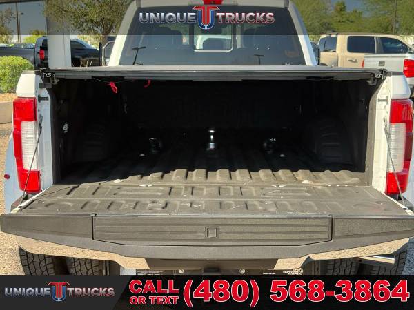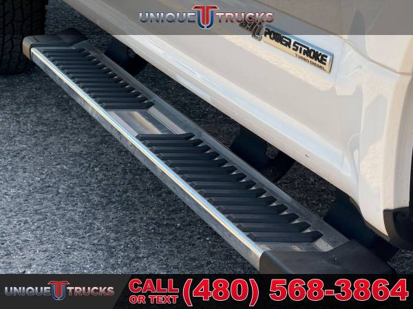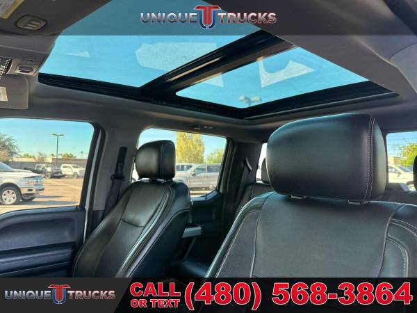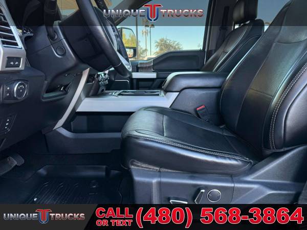 INSTALLED FEATURES: Air filtration, Front air conditioning: automatic climate control, Front air conditioning zones: dual, Rear vents: second row, Airbag deactivation: passenger switch, Front airbags: dual, Side airbags: front, Side curtain airbags: front / rear, Antenna type: diversity / mast, Auxiliary audio input: Bluetooth / iPod/iPhone / jack / memory card slot / USB, In-Dash CD: MP3 Playback / single disc, Premium brand: Sony, Radio: AM/FM / touch screen display / voice operated, Radio data system, Satellite radio: SiriusXM, Speed sensitive volume control, Subwoofer: 1, Total speakers: 10, ABS: 4-wheel, Braking assist, Electronic brakeforce distribution, Front brake type: ventilated disc, Power brakes, Rear brake type: ventilated disc, Armrests: rear center with cupholders, Center console trim: leather, Dash trim: wood, Door sill trim: scuff plate, Floor mat material: carpet, Floor material: carpet, Floor mats: front / rear, Steering wheel trim: leather, Adjustable pedals: power, Assist handle: front / rear, Center console: front console with armrest and storage, Cruise control, Cupholders: front / rear, Keypad entry, Multi-function remote: keyless entry, One-touch windows: 2, Overhead console: front, Power outlet(s): 115V front / 115V rear / 12V front / 12V rear, Power steering, Power windows: lockout button, Reading lights: front / rear, Rearview mirror: auto-dimming, Steering wheel: tilt and telescopic, Steering wheel mounted controls: audio / cruise control / multi-function / phone / voice control, Storage: cargo tie-down anchors and hooks / door pockets / front seatback / in dash / sunglasses holder / under rear seats, Vanity mirrors: dual illuminating, Door handle color: body-color, Front bumper color: chrome, Grille color: body-color surround / chrome, License plate bracket: front, Mirror color: black, Pickup bed light, Rear bumper color: chrome, Running board color: chrome, Running boards, Tailgate: lift assist / power locking / removable, Window trim: black, Infotainment: SYNC, Infotainment screen size: 8 in., Smartphone integration: Android Auto / Apple CarPlay, Video system: auxiliary audio/video input, Clock, Compass, Customizable instrument cluster, Digital odometer, External temperature display, Fuel economy display: MPG / range, Gauge: tachometer, Instrument cluster screen size: 8 in., Multi-function display, Powertrain hour meter, Trip odometer, Warnings and reminders: low fuel level / low oil level, Clearance lights, Exterior entry lights: approach lamps / puddle lamps, Front fog lights, Headlights: auto delay off / auto on / halogen / quad headlights / wiper activated, Side mirror adjustments: power / power folding / power telescoping, Side mirrors: driver side auto-dimming / heated / integrated turn signals, Towing mirrors, 4WD selector: electronic hi-lo, 4WD type: part time, Alternator: 200 amps, Battery rating: 750 CCA, Battery saver, Camera system: rearview, Child safety door locks, Child seat anchors: LATCH system, Crumple zones: front, Impact sensor: alert system / door unlock / post-collision safety system, Parking sensors: rear, Programmable safety key, Rearview monitor: in dash, Emergency locking retractors: front / rear, Front seatbelts: 3-point, Rear seatbelts: 3-point, Seatbelt pretensioners: front, Seatbelt warning sensor: front, Driver seat power adjustments: 10 / height / lumbar / reclining, Front headrests: 2 / adjustable, Front seat type: captains chairs, Passenger seat power adjustments: 10 / height / lumbar / reclining, Rear headrests: 3 / adjustable, Rear seat folding: folds up / split, Rear seat type: 60-40 split bench, Upholstery: leather, Anti-theft system: alarm / anti-tow sensor / interior motion sensor / perimeter alarm / vehicle immobilizer, Power door locks: auto-locking, Off-road driving assist: hill ascent, Roll stability control, Stability control, Traction control, Trailer stability control, Front shock type: gas, Front spring type: coil, Front stabilizer bar, Front suspension classification: solid live axle, Front suspension type: multi-link, Rear shock type: gas, Rear spring type: leaf, Rear stabilizer bar, Rear suspension classification: solid live axle, Rear suspension type: multi-leaf, Driver assistance app: roadside assistance, Electronic messaging assistance: with read function, Hands-free phone call integration: voice operated, Wireless data link: Bluetooth, Tow hooks: front, Trailer brake controller, Trailer hitch, Trailer wiring: 4-pin / 7-pin, Dual rear wheels, Spare tire kit, Spare tire mount location: underbody, Spare tire size: full-size, Spare wheel type: steel, Tire Pressure Monitoring System, Wheel covers: full, Wheels: polished aluminum alloy, Front wipers: intermittent, Pickup sliding rear window: power horizontal, Power windows, Rear privacy glass, Solar-tinted glass: front, Window defogger: rear