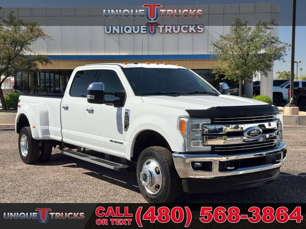 This 2017 Ford F-350 Super Duty Lariat Crew Cab Dually 4x4 is one of the cleanest and nicest trucks you’ll find anywhere. Finished in sharp Oxford White with bright chrome accents, this truck stands tall and makes a strong first impression everywhere it goes. It’s a guaranteed head turner that’s hard to find this clean and ready to handle anything you throw at it, whether it’s work, travel, or weekend towing.Under the hood sits the 6.7-liter Power Stroke turbocharged diesel V8 engine paired with a smooth 6-speed automatic transmission. This setup gives you serious power for hauling and towing, with smooth acceleration and strong pulling strength that never feels short on torque. It’s built to work hard yet drive comfortably, giving you the best of both worlds in one clean dually.Step inside and you’ll find a black leather interior that gives this truck a refined and comfortable feel. The Lariat trim makes it easy to relax behind the wheel with features like heated and ventilated front seats, heated rear seats, and a leather-wrapped steering wheel that feels great in your hands. The cabin is designed for space and function, offering plenty of room for passengers and gear.This truck comes equipped with the Lariat Ultimate Package, bringing you many premium features that make every drive smoother and easier. It includes lane-keeping technology and adaptive steering, helping you stay steady and confident on the highway. The dual-zone electronic automatic climate control keeps the cabin at the perfect temperature for everyone, no matter the weather outside.You’ll also find a power twin-panel moonroof that brightens the cabin and opens up for fresh air, along with LED box lighting that makes working at night easy. The remote start system adds convenience, letting you warm up or cool down your truck before even stepping inside. Everything about this dually is built for comfort, ease, and daily use.For those who love to tow, this F-350 comes ready to work with a fifth-wheel prep package, trailer brake controller, and the FX4 Off-Road Package. The FX4 setup adds skid plates, off-road tuned shocks, and extra underbody protection, making it ready for rough roads or job sites. The blind spot information system with trailer coverage adds safety and peace of mind when hauling larger loads.Technology is everywhere in this truck, centered around the large 8-inch touchscreen with Ford’s SYNC system. It brings you access to your apps, phone, and entertainment all in one place. You also get multiple power outlets, including USB ports and a 110V plug, giving you everything you need for travel or work days on the go.From the outside, this truck’s Oxford White paint and chrome details shine bright and clean. The wide stance, polished dually rear fenders, and chrome running boards give it a bold, confident look. It’s a truck that looks just as good pulling a trailer as it does parked in front of your home or business.At Unique Trucks, the price you see is the price you pay. We don’t believe in hidden markups or addendums—just clear, honest pricing every time. We’re proud to make buying trucks and lifted trucks simple and stress-free, whether you shop with us in person or over the phone.We also offer our no-obligation delivery service, where this truck can be delivered right to your doorstep. You can make your best deal from home, take a test drive right where you are, and if you don’t like it, you don’t buy it. This 2017 Ford F-350 Super Duty Lariat Dually 4x4 has been fully serviced and is ready for its next owner. We love trade-ins and invite you to come in and see our full lineup of trucks and lifted trucks today. ________________________________________ 2017* 2018* 2019* FORD* F-350*F350* F 350* FORD TRUCKS* DUALLY* DUAL REAR WHEEL* DRW* 4X4* FOUR WHEEL DRIVE* 4WD* DIESEL* LARIAT* SUPER DUTY* DUALLY* LIFTED TRUCKS* FORD TRUCKS* F350 TRUCKS* DIESEL* POWERSTROKE* V8* TURBOCHARGED* DIESEL TRUCKS* V8* DUALLY* DIESEL* LOW MILES* 4X4* FOUR WHEEL DRIVE* DIESEL* DIESEL TRUCKS* LOW MILES* LOW MILEAGE* RELIABLE* ONLY*