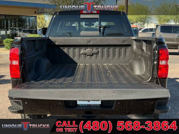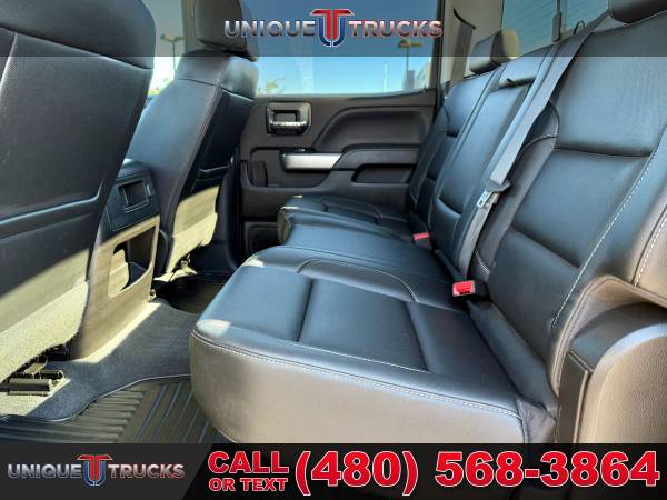 INSTALLED FEATURES: Air filtration, Front air conditioning: automatic climate control, Front air conditioning zones: dual, Airbag deactivation: occupant sensing passenger, Front airbags: dual, Antenna type: diversity / mast, Auxiliary audio input: Bluetooth / iPod/iPhone / jack / USB, In-Dash CD: MP3 Playback / single disc, Internet radio app: iHeartRadio / Pandora, Radio: AM/FM / HD radio / touch screen display / voice operated, Radio data system, Satellite radio: SiriusXM, Speed sensitive volume control, Total speakers: 6, ABS: 4-wheel, Braking assist, Electronic brakeforce distribution, Front brake type: ventilated disc, Power brakes, Rear brake type: ventilated disc, Armrests: front center / rear center with cupholders / rear folding, Floor mat material: rubber/vinyl, Floor material: carpet, Floor mats: front / rear, Steering wheel trim: leather, Assist handle: front / rear, Capless fuel filler system, Cruise control, Cupholders: front / rear, Memorized settings: 2 driver / driver seat / side mirrors, Multi-function remote: keyless entry / panic alarm, One-touch windows: 4, Overhead console: front, Power outlet(s): 115V front / 12V front, Power steering: variable/speed-proportional, Power windows: lockout button, Reading lights: front, Rearview mirror: auto-dimming, Remote engine start, Steering wheel: tilt and telescopic, Steering wheel mounted controls: audio / cruise control / voice control, Storage: door pockets / front seatback / sunglasses holder, Universal remote transmitter: garage door opener, Vanity mirrors: dual illuminating, Body side moldings: chrome, Bumper detail: rear step, Door handle color: chrome, Exhaust tip color: stainless steel, Front bumper color: chrome, Grille color: chrome / chrome surround, Mirror color: chrome, Pickup bed light, Rear bumper color: chrome, Tailgate: lift assist / power locking / removable, Window trim: chrome, Connected in-car apps: app marketplace integration, Infotainment: Chevrolet Infotainment System, Infotainment screen size: 8 in., Smartphone integration: Android Auto / Apple CarPlay, Clock, Digital odometer, External temperature display, Fuel economy display: MPG / range, Gauge: oil pressure / tachometer, Instrument cluster screen size: 4.2 in., Multi-function display, Powertrain hour meter, Trip odometer, Warnings and reminders: coolant temperature warning / lamp failure / low battery / low fuel level / low oil pressure / maintenance due, Clearance lights, Daytime running lights, Front fog lights, Headlights: auto delay off / auto on/off / halogen, Side mirror adjustments: manual telescoping / power / power folding, Side mirrors: heated / integrated turn signals, Towing mirrors, 4WD selector: electronic hi-lo, 4WD type: part time, Alternator: 150 amps, Auxiliary oil cooler, Auxiliary transmission fluid cooler, Battery: heavy duty / maintenance-free, Battery rating: 720 CCA, Battery saver, Locking differential: rear, Camera system: rearview, Check rear seat reminder, Child safety door locks, Child seat anchors: LATCH system, Programmable safety key, Rearview monitor: in dash, Emergency locking retractors: front, Front seatbelts: 3-point, Rear seatbelts: 3-point, Seatbelt pretensioners: front, Seatbelt warning sensor: front, Driver seat: heated, Driver seat power adjustments: 10 / height / lumbar / reclining, Front headrests: 2 / adjustable, Front seat type: 40-20-40 split bench, Passenger seat: heated, Passenger seat power adjustments: 10 / height / lumbar / reclining, Rear headrests: 2 / adjustable, Rear seat folding: folds up, Rear seat type: 60-40 split bench, Upholstery: leather-trimmed, Anti-theft system: alarm / vehicle immobilizer, Power door locks: anti-lockout / auto-locking, Hill holder control, Roll stability control, Stability control, Traction control, Trailer stability control, Front shock type: twin-tube gas, Front spring type: torsion bars, Front stabilizer bar: diameter 33 mm, Front suspension classification: independent, Front suspension type: short and long arm, Rear shock type: twin-tube gas, Rear spring type: leaf, Rear suspension classification: solid live axle, Rear suspension type: multi-leaf, Driver assistance app: roadside assistance, Electronic messaging assistance: voice operated / with read function, Hands-free phone call integration: voice operated, Satellite communications: OnStar / voice guided directions, Smart device app compatibility: myChevrolet with Connected Access, Smart device app function: maintenance status, Wi-Fi: hotspot, Wireless data link: Bluetooth, Tow hooks: front, Tow/Haul mode, Trailer brake controller, Trailer hitch, Trailer wiring: 4-pin / 7-pin, Spare tire mount location: underbody, Spare tire size: full-size, Spare wheel type: steel, Wheels: chrome aluminum alloy, Front wipers: variable intermittent, Pickup sliding rear window: power horizontal, Power windows: safety reverse, Tinted glass, Window defogger: rear