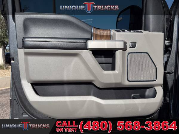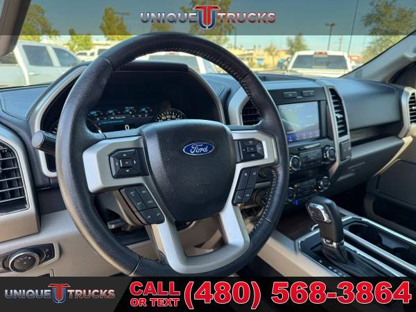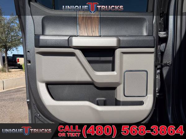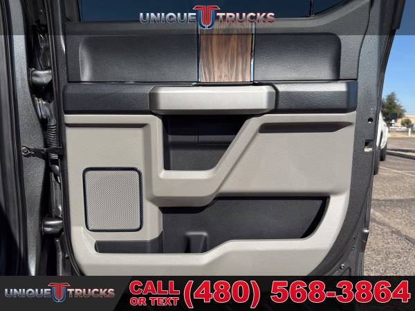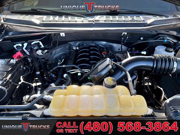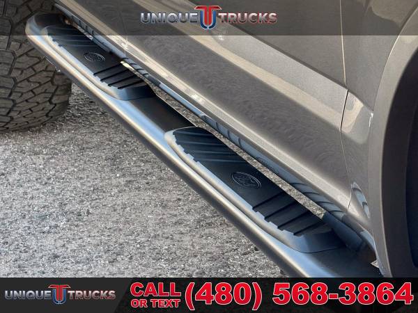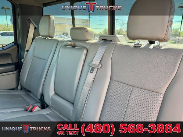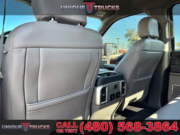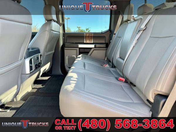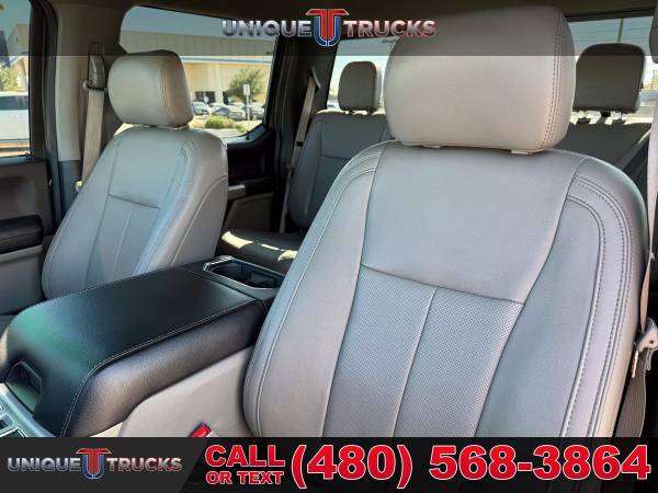 INSTALLED FEATURES: Air filtration, Front air conditioning: automatic climate control, Front air conditioning zones: dual, Airbag deactivation: occupant sensing passenger, Front airbags: dual, Side airbags: front, Side curtain airbags: front / rear, Antenna type: diversity / mast, Auxiliary audio input: Bluetooth / iPod/iPhone / USB, Radio: AM/FM / touch screen display / voice operated, Radio data system, Satellite radio: SiriusXM, Speed sensitive volume control, Total speakers: 7, ABS: 4-wheel, Braking assist, Cornering brake control, Electronic brakeforce distribution, Electronic parking brake: auto off, Emergency braking preparation, Front brake type: ventilated disc, Power brakes, Rear brake type: ventilated disc, Armrests: front center / rear center folding with storage / rear center with cupholders, Dash trim: alloy, Door sill trim: scuff plate, Door trim: alloy, Floor mat material: carpet, Floor material: carpet, Floor mats: front / rear, Steering wheel trim: leather, Adjustable pedals: power, Ambient lighting: color, Assist handle: front / rear, Capless fuel filler system, Cruise control, Cupholders: front / rear, Easy entry: power driver seat, Keypad entry, Memorized settings: 3 driver / adjustable pedals / driver seat / side mirrors, Multi-function remote: panic alarm / proximity entry system, One-touch windows: 2, Overhead console: front, Power outlet(s): 12V front / 12V rear, Power steering: variable/speed-proportional, Power windows: lockout button, Push-button start, Reading lights: front / rear, Rearview mirror: auto-dimming, Steering wheel: tilt and telescopic, Steering wheel mounted controls: audio / cruise control / multi-function / phone / voice control, Storage: accessory hook / door pockets / front seatback / in seat cushion / sunglasses holder / under rear seats, Vanity mirrors: dual illuminating, Active grille shutters, Door handle color: body-color, Fender lip moldings: body-color, Front bumper color: chrome, Grille color: black surround / chrome, Mirror color: body-color, Pickup bed light: LED / tailgate illumination, Rear bumper color: chrome, Tailgate: power locking / removable, Window trim: black, Connected in-car apps: app marketplace integration / Google POIs / Google search, Infotainment: SYNC, Infotainment screen size: 8 in., Smartphone integration: Android Auto / Apple CarPlay, Clock, Compass, Customizable instrument cluster, Digital odometer, External temperature display, Fuel economy display: MPG / range, Gauge: oil pressure / tachometer / transmission temperature, Instrument cluster screen size: 8 in., Multi-function display, Powertrain hour meter, Trip odometer, Warnings and reminders: low fuel level / low oil level / maintenance due, Daytime running lights, Exterior entry lights: approach lamps / puddle lamps, Front fog lights, Headlights: auto delay off / auto high beam dimmer / auto on/off / halogen / wiper activated, Side mirror adjustments: power / power folding, Side mirrors: driver side auto-dimming / heated / integrated turn signals, 4WD selector: electronic hi-lo, 4WD type: part time w/ on demand setting, Alternator: 200 amps, Auto start/stop, Battery: maintenance-free, Battery rating: 800 CCA, Battery saver, Drive mode selector, Automatic emergency braking: front, Automatic hazard warning lights, Camera system: rearview, Child safety door locks, Child seat anchors: LATCH system, Crumple zones: front, Impact sensor: alert system / door unlock / post-collision safety system, Pre-collision warning system: audible warning / visual warning, Programmable safety key, Rearview monitor: in dash, Emergency locking retractors: front, Front seatbelts: 3-point, Rear seatbelts: 3-point, Seatbelt force limiters: front, Seatbelt pretensioners: front, Seatbelt warning sensor: front, Driver seat: heated / ventilated, Driver seat power adjustments: 10 / height / lumbar / reclining, Front headrests: 3 / adjustable, Front seat type: 40-20-40 split bench, Passenger seat: heated / ventilated, Passenger seat power adjustments: 10 / height / lumbar / reclining, Rear headrests: 3 / adjustable, Rear seat folding: folds up / split, Rear seat type: 60-40 split bench, Upholstery: leather-trimmed, Anti-theft system: alarm / anti-tow sensor / interior motion sensor / perimeter alarm / vehicle immobilizer, Power door locks: anti-lockout / auto-locking, Hill holder control, Roll stability control, Stability control, Traction control, Trailer stability control, Front shock type: gas, Front spring type: coil, Front stabilizer bar: diameter 36 mm, Front struts, Front suspension classification: independent, Front suspension type: double wishbone, Rear shock type: gas, Rear spring type: leaf, Rear suspension classification: solid live axle, Rear suspension type: multi-leaf, Electronic messaging assistance: voice operated / with read function, Hands-free phone call integration: voice operated, Smart device app compatibility: FordPass Connect, Smart device app function: engine start / horn/light operation / lock operation / maintenance status / vehicle location, Wi-Fi: hotspot, Wireless data link: Bluetooth, Pickup bed cargo management: tie-down anchors, Tow hooks: front, Tow/Haul mode, Trailer hitch: Class IV, Trailer wiring: 4-pin / 7-pin, Spare tire mount location: underbody, Spare tire size: full-size, Spare wheel type: steel, Tire Pressure Monitoring System, Wheel locks: spare only, Wheels: aluminum alloy with painted accents, Front wipers: variable intermittent, Laminated glass: acoustic windshield, Pickup sliding rear window: power horizontal, Power windows: safety reverse, Rear privacy glass, Solar-tinted glass: rear, Window defogger: rear