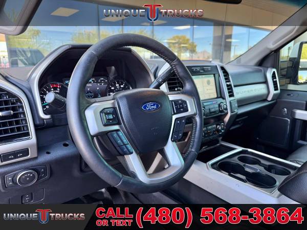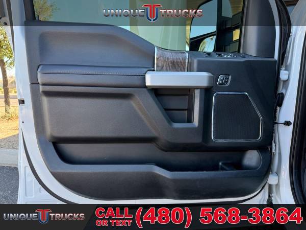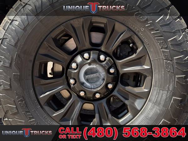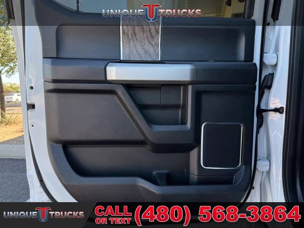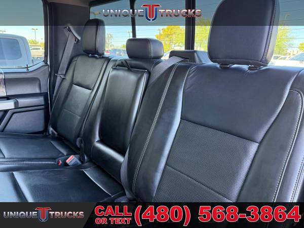 INSTALLED FEATURES: Air filtration, Front air conditioning: automatic climate control, Front air conditioning zones: dual, Rear vents: second row, Airbag deactivation: passenger switch, Front airbags: dual, Side airbags: front, Side curtain airbags: front / rear, Antenna type: diversity / mast, Auxiliary audio input: Bluetooth / iPod/iPhone / jack / USB, Digital sound processing, Premium brand: B&O PLAY, Radio: AM/FM / touch screen display / voice operated, Radio data system, Satellite radio: SiriusXM, Speed sensitive volume control, Subwoofer: 1, Total speakers: 9, Watts: 1000, ABS: 4-wheel, Braking assist, Electronic brakeforce distribution, Front brake type: ventilated disc, Power brakes, Rear brake type: ventilated disc, Armrests: rear center with cupholders, Center console trim: leather, Door sill trim: scuff plate, Floor mat material: carpet, Floor material: carpet, Floor mats: front / rear, Steering wheel trim: leather, Adjustable pedals: power, Assist handle: front / rear, Center console: front console with armrest and storage, Cruise control, Cupholders: front / rear, Keypad entry, Multi-function remote: keyless entry / panic alarm, One-touch windows: 2, Overhead console: front, Power outlet(s): 115V front / 115V rear / 12V front, Power steering, Power windows: lockout button, Reading lights: front / rear, Rearview mirror: auto-dimming, Remote engine start, Steering wheel: tilt and telescopic, Steering wheel mounted controls: audio / cruise control / multi-function / phone / voice control, Storage: accessory hook / door pockets / front seatback / under rear seats, Vanity mirrors: dual illuminating, Door handle color: body-color, Front bumper color: chrome, Grille color: chrome, License plate bracket: front, Mirror color: black, Pickup bed light, Rear bumper color: chrome, Tailgate: lift assist / power locking / removable, Window trim: black, Connected in-car apps: app marketplace integration / Google POIs / Google search / SYNC Destinations-travel, Infotainment: SYNC, Infotainment screen size: 8 in., Smartphone integration: Android Auto / Apple CarPlay, Clock, Compass, Customizable instrument cluster, Digital odometer, External temperature display, Fuel economy display: MPG / range, Gauge: oil pressure / tachometer / transmission temperature, Instrument cluster screen size: 8 in., Multi-function display, Powertrain hour meter, Trip odometer, Warnings and reminders: low fuel level / maintenance due, Exterior entry lights: approach lamps / puddle lamps, Front fog lights, Headlights: auto delay off / auto on/off / halogen / quad headlights / wiper activated, Side mirror adjustments: power / power folding / power telescoping, Side mirrors: heated / integrated turn signals, Towing mirrors, 4WD selector: electronic hi-lo, 4WD type: part time, Alternator: 200 amps, Battery: maintenance-free, Battery rating: 750 CCA, Battery saver, Automatic hazard warning lights, Camera system: rearview, Child safety door locks, Child seat anchors: LATCH system, Crumple zones: front, Impact sensor: alert system / door unlock / post-collision safety system, Parking sensors: rear, Programmable safety key, Rearview monitor: in dash, Emergency locking retractors: front / rear, Front seatbelts: 3-point, Rear seatbelts: 3-point, Seatbelt pretensioners: front, Seatbelt warning sensor: front, Driver seat power adjustments: 10 / height / lumbar / reclining, Front headrests: 2 / adjustable, Front seat type: captains chairs, Passenger seat power adjustments: 10 / height / lumbar / reclining, Rear headrests: 3 / adjustable, Rear seat folding: folds up / split, Rear seat type: 60-40 split bench, Upholstery: leather, Anti-theft system: alarm / anti-tow sensor / interior motion sensor / vehicle immobilizer, Power door locks: anti-lockout / auto-locking, Hill holder control, Roll stability control, Stability control, Traction control, Trailer stability control, Front shock type: gas, Front spring type: coil, Front stabilizer bar: diameter 28 mm, Front suspension classification: solid live axle, Front suspension type: multi-link, Rear shock type: gas, Rear spring type: leaf, Rear suspension classification: solid live axle, Rear suspension type: multi-leaf, Electronic messaging assistance: voice operated / with read function, Hands-free phone call integration: voice operated, Smart device app compatibility: FordPass Connect, Smart device app function: engine start / lock operation / maintenance status / vehicle location, Wi-Fi: hotspot, Wireless data link: Bluetooth, Pickup bed cargo management: tie-down anchors, Tow hooks: front, Trailer brake controller, Trailer hitch, Trailer wiring: 4-pin / 7-pin, Spare tire mount location: underbody, Spare tire size: full-size, Spare wheel type: steel, Tire Pressure Monitoring System, Wheels: aluminum alloy, Front wipers: variable intermittent, Pickup sliding rear window: power horizontal, Power windows: safety reverse, Rear privacy glass, Solar-tinted glass: front, Window defogger: rear