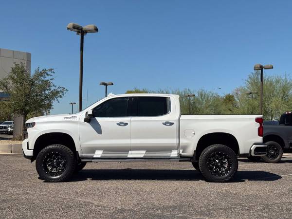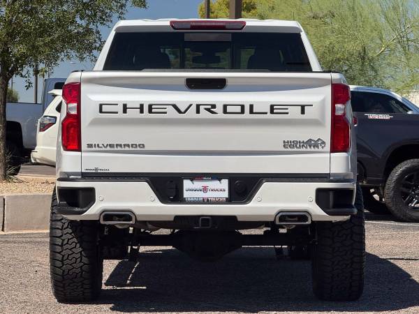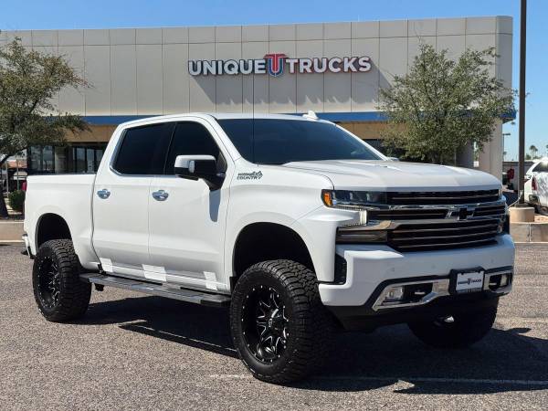 This lifted and hard to find 2022 Chevrolet Silverado 1500 High Country Edition 4x4 Crew Cab is as clean and eye catching as they come. Finished in the Iridescent Pearl Tri Coat exterior with matching color key paint and sharp bronze and chrome High Country accents, this truck has a look that is guaranteed to turn heads. The bold style is matched with the High Country badging throughout, making this Silverado stand out from the rest.Inside, you’ll find the premium Jet Black leather interior with High Country edition stitching that adds detail to every seat. Heated and ventilated front bucket seats, heated rear seats, and the power sunroof bring luxury and comfort together. The Bose premium audio system with subwoofer fills the cabin with sound, while wireless charging, memory seating, and dual zone climate control add convenience for both driver and passengers. This interior was built for comfort on every trip.Power comes from the strong 6.2–liter EcoTec3 V8 engine paired with the smooth 10–speed automatic transmission. With advanced towing technology, trailer brake controller, and Autotrac two–speed transfer case, this Silverado makes towing and hauling simple. The dual polished tip exhaust adds a clean look while delivering the right sound, and the advanced trailering system with hitch guidance makes sure you’re always ready to pull what you need.This lifted truck comes with a custom 5.5–inch lift kit that gives it the height and stance to stand tall. Brand new all terrain tires wrapped around custom Fuel wheels complete the look, making this Silverado High Country a true head turner. The lift kit, paired with adaptive ride control, gives this truck the capability to perform while still keeping the ride smooth. This lifted truck is built to grab attention while being ready to handle tough work or daily driving.On the exterior, you’ll find features like high intensity LED headlamps with signature daytime running lamps, front LED fog lamps, LED Durabed lighting, and LED tail lamps. A power tailgate with lock and release, ChevyTec spray–on bedliner, and chrome assist steps add both convenience and durability. Chrome recovery hooks, a 120V AC bed mounted outlet, rear wheelhouse liners, and power folding mirrors with perimeter lighting complete the premium High Country package.Connectivity is a highlight in this truck, with Chevrolet Infotainment 3 Premium and its 8–inch HD screen with navigation. Bluetooth for phone and audio streaming for up to two devices, Apple CarPlay, Android Auto, and enhanced voice recognition keep you connected. SiriusXM radio, OnStar services, and a 4G LTE Wi–Fi hotspot bring modern convenience to every drive. The enhanced driver information center and digital features keep everything right in front of you with ease.Safety comes built into this Silverado High Country. It features lane change alert with side blind zone alert, rear cross traffic alert, HD rear vision camera, Stabilitrak with trailer sway control, hill start assist, forward collision alert, front pedestrian braking, lane keep assist with lane departure warning, low speed automatic braking, Intellibeam automatic high beams, and a driver’s safety alert seat. These features make this lifted truck not only good looking, but also dependable and safe.Additional touches like the custom tri–fold hard tonneau cover, spray in bedliner, chrome running boards, black bowtie emblems, and wheel locks add to the finished look of this lifted Silverado High Country. The 3.23 electronic locking axle and GVWR of 7100 pounds give you the power to tow and haul, while the polished exhaust tips and chrome trim give it style. This lifted truck is fully serviced and ready for its next owner.At Unique Trucks, the price you see is the price you pay. We don’t add hidden markups, no addendums, and no surprises. We keep it simple and upfront because buying lifted trucks should be easy, not complicated. That’s why our customers know they are getting a clean deal on the cleanest trucks available.We also make it even better with our no obligation delivery service. This Silverado 1500 High Country can be delivered right to your doorstep with no obligation at all. You can test drive it from the comfort of your own home, make your best deal over the phone, and if you don’t like it, you don’t buy it. We love trade–ins and always encourage you to come by and check out our full lineup of trucks and lifted trucks. This clean lifted Silverado is a guaranteed head turner that is ready today. ________________________ 2022* CHEVY* CHVROLET* SILVERADO* 1500* LIMITED* HIGH COUNTRY* CREW* CREW CAB* 6.2 LITER* V8* 1500* LIMITED* LIFTED TRUCKS* LIFTED CHEVY* LIFTED CHEVROLET* LIFTED SILVERADO* LIFTED CHVEY* GAS TRUCKS* 1500* LIFTED* LOW MILES* LOW MILEAGE* RELIABLE* ONLY*