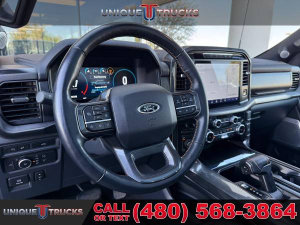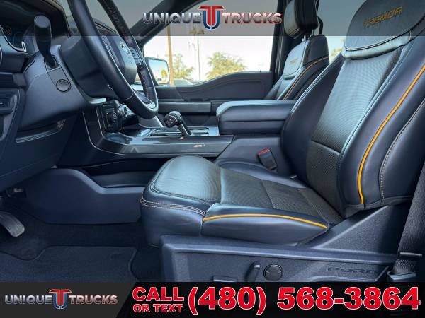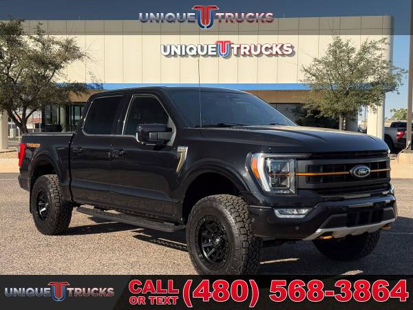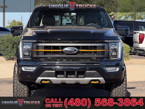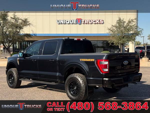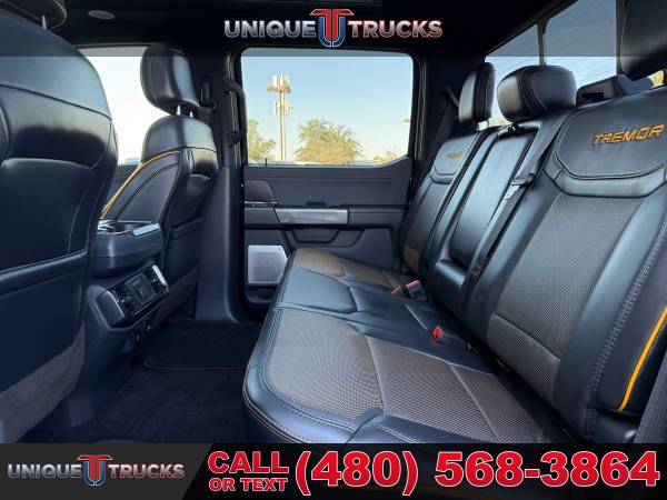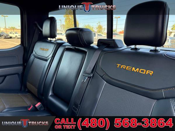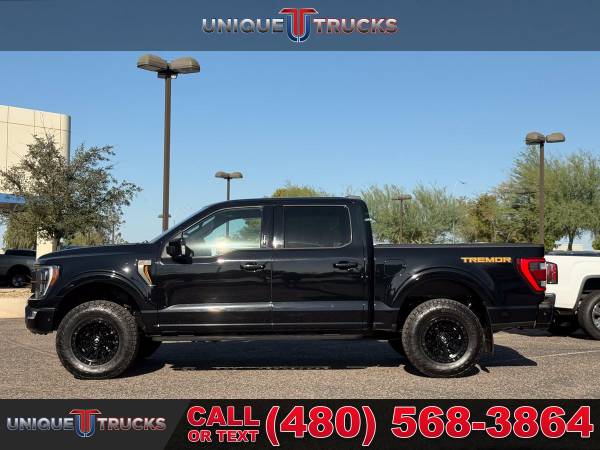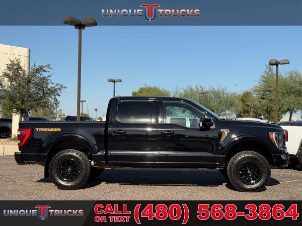 If you’ve been looking for a hard-to-find, super clean, eye-catching truck, this 2022 Ford F-150 SuperCrew Tremor 4x4 is one you don’t want to miss. Finished in Agate Black Metallic with bold orange Tremor accents, this truck stands out from every angle. It’s one of the cleanest, nicest trucks you’ll find—ready to grab attention wherever it goes.Under the hood, this Tremor is powered by the strong 3.5-liter V6 EcoBoost engine paired with the smooth electronic 10-speed automatic transmission. It delivers power and performance that’s ready for towing, hauling, or just everyday driving. Whether you’re on the road or off it, this truck handles it all with confidence.This F-150 has been lifted with a 2-inch ReadyLift kit, giving it an even tougher look and extra ground clearance. It rides on Fuel wheels wrapped in Toyo AT3 all-terrain tires, giving it a perfect balance of aggressive style and all-around capability. Every inch of this truck shows care and attention to detail—it’s clean, sharp, and ready to go.The Agate Black exterior shines bright with LED fog lamps, auto high beams, daytime running lights, and a dual rear exhaust that looks and sounds great. The pickup box includes tie-down hooks and a power tailgate lock for convenience, while trailer sway control keeps everything steady when towing. With its unique Tremor front knuckles and off-road suspension setup, this truck is built for more than just looks—it’s built to perform.Inside, the Tremor’s black leather seats with orange stitching and a full center console make the cabin both comfortable and stylish. The 60/40 fold-up rear bench gives you plenty of space for gear, while power door locks, windows, illuminated entry, and tilt-and-telescoping steering add simple everyday ease. The dual-zone electronic climate control keeps you comfortable in any season, while the wireless charging pad and multiple 12V outlets make sure everything stays powered.This truck is loaded with Ford’s latest technology, including the SYNC 4 system and a large full-color touchscreen with navigation built right in. You’ll also get FordPass Connect, lane-keeping system, pre-collision assist with automatic emergency braking, and a full 360-degree camera setup. The BlueCruise hands-free driving system brings next-level comfort for long trips, while reverse sensing, reverse brake assist, and dynamic hitch assist make parking and towing simple.Safety is a major part of what makes this truck special. It includes AdvanceTrac with Roll Stability Control, front and side airbags, an SOS post-crash alert system, and a tire pressure monitor. The perimeter alarm adds peace of mind, and post-collision braking helps keep you safe if the unexpected happens. Ford builds these trucks to handle anything while keeping you and your passengers secure.The Tremor package adds even more—like LED box lighting, a remote start system, BoxLink cargo system, trailer tow package with an integrated brake controller, and skid plates underneath for protection. The twin-panel moonroof opens up the cabin, while the B&O Unleashed sound system with 18 speakers fills it with clear, rich sound. The power tailgate, power sliding rear window, and 400W outlet round out the convenience features that make this Tremor special.Fully serviced and ready for its next owner, this 2022 Ford F-150 Tremor SuperCrew 4x4 is built to turn heads and handle any adventure. From its lifted stance and sharp design to its high-end features and powerful performance, this truck has it all.At Unique Trucks, the price you see is the price you pay—no hidden markups, no addendums, ever. Plus, with our No Obligation Delivery Service, we’ll bring the truck right to your doorstep. You can test drive it from the comfort of your own home, make your best deal over the phone, and if you don’t like it, you don’t buy it. We love trade-ins and encourage you to come in and check out our wide selection of clean, lifted trucks that are ready to impress. _________________________________________________ 2022* 2023* FORD* F-150* F150* F 150 SUPERCREW* TREMOR* TREMOR EDITION* CREW* CREW CAB* 4X4* ECOBOOST* 3.5 LITER V6 ECOBOOST* ENGINE* GAS TRUCKS* TREMOR* TREMOR PACKAGE* GAS TRUCKS* F150* LIFTED TRUCKS* LIFTED F-150* FORD TRUCKS* GAS TRUCKS* LOW MILES* LOW MILEAGE* RELIABLE* ONLY*