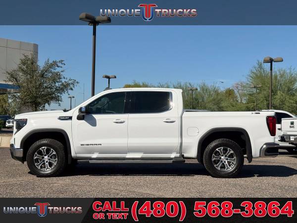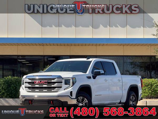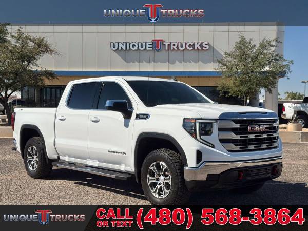 This eye-catching 2023 GMC Sierra 1500 SLE Crew Cab 4x4 is as clean as they come and ready to impress from every angle. Dressed in bright Summit White with sleek chrome accents, it has that classic, sharp look that stands out wherever it goes. Inside, the Jet Black cloth interior keeps things simple, comfortable, and well-kept. Power comes from the reliable 5.3-liter EcoTec3 V8 engine matched with a smooth 10-speed automatic transmission, giving you the strength and performance you need for work, travel, or play.This Sierra is built to handle whatever comes its way. With its auto-locking rear differential, Stabilitrak with trailer sway control, and hill start assist, it delivers steady traction and confidence on any terrain. The trailer package and trailer brake controller make towing simple and safe, while features like brake pad monitoring and dual 120V power outlets—in the cargo bed and dash—add useful convenience for tools or equipment.Inside the cabin, you’re met with the 13.4-inch GMC Premium Infotainment touchscreen that brings everything together. It features Google built-in compatibility, wireless Apple CarPlay, and Android Auto for a smooth connection to your phone. You’ll also enjoy OnStar services, Wi-Fi hotspot capability, SiriusXM radio, and a large 12.3-inch digital driver display that keeps key information right in front of you. Keyless open and start, remote start, and a theft-deterrent system make everyday use simple and secure.Comfort and practicality are both built into this Sierra’s design. Dual-zone climate control, heated front seats, a heated wrapped steering wheel, and rear air vents keep everyone comfortable in all seasons. The 40/20/40 split front bench with an armrest and underseat storage adds versatility, and the 60/40 rear folding bench seat provides plenty of cargo space when you need it.On the outside, this truck mixes style with function. LED headlights, taillights, and daytime running lamps light up the road, while the EZ-Lift power lock and release tailgate and LED cargo lighting make loading easy. Power-adjustable heated mirrors, corner step rear bumpers, and front recovery hooks all add convenience to everyday use.With the X31 Off-Road and Protection Package, this Sierra is ready for adventure. It includes off-road suspension, hill descent control, skid plates, a heavy-duty air filter, and a two-speed Autotrac transfer case for extra control when driving off the beaten path. The 18-inch machined aluminum wheels and all-terrain tires add grip and a bold, ready-to-go stance.The spray-on bedliner keeps your truck bed protected, while the dealer-installed 6-inch chrome assist steps give it a nice finishing touch. The dual exhaust setup adds to its strong presence, and the engine block heater makes cold starts easier in colder weather. Every detail of this truck is made for performance and everyday comfort.This 2023 GMC Sierra 1500 SLE has been fully serviced, carefully maintained, and is ready for its next owner. It’s built to handle long days at work or weekend getaways with ease, offering a mix of reliability, comfort, and good looks that’s hard to find.At Unique Trucks, the price you see is the price you pay—no hidden markups or addendums, ever. We take pride in offering the cleanest, nicest trucks around with upfront, honest pricing you can trust.And with our No Obligation Delivery, your new truck can be delivered straight to your doorstep. You can test drive it right at home, make your best deal over the phone, and if you don’t like it, you don’t buy it. We love trade-ins and invite you to stop by and see our great selection for yourself. _______________________________________ 2023* 2022* GMC* SIERRA* 1500* SLE* CREW* CAB* TRUCKS* GAS TRUCKS* 1500* SLE* CREW* LIFTED TRUCKS* ECOTEC3* V8* 5.3 LITER* SIERRA TRUCKS* GMC TRUCKS* LOW MILES* LOW MILEAGE* RELIABLE* ONLY* FOUR WHEEL DRIVE* 4WD* 4X4* GAS TRUCKS* LIFTED TRUCKS* GMC* SIERRA* SLE* EDITION*