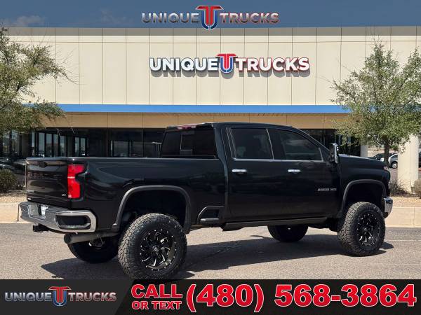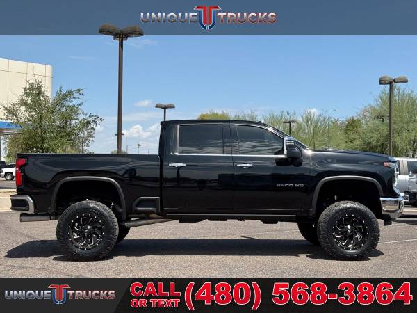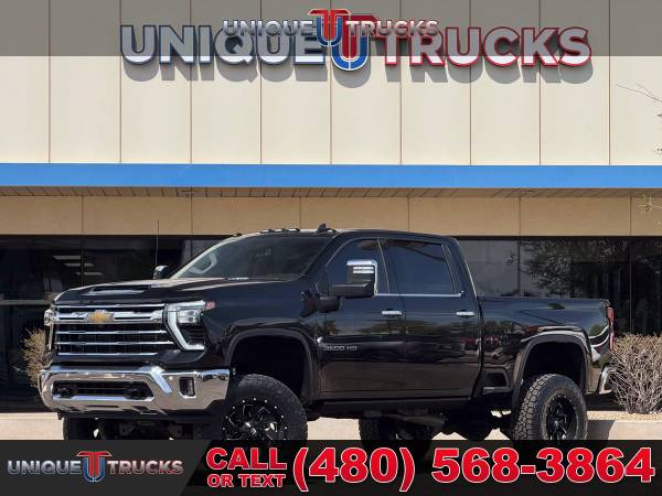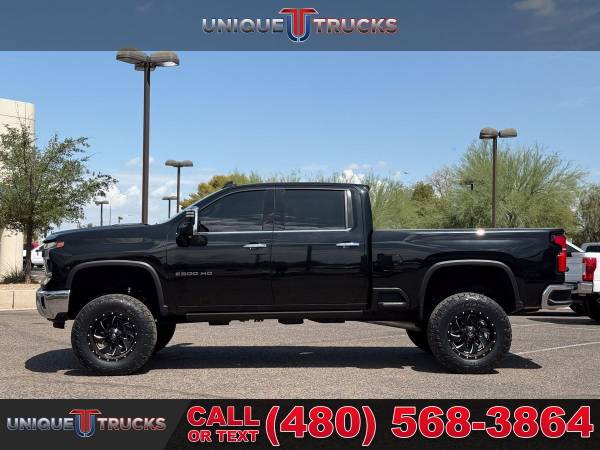 This clean lifted 2024 Chevrolet Silverado 2500HD LTZ Crew Cab 4x4 is one sharp-looking truck that grabs attention from every angle. The bold black Chevrolet bowtie on the grille, matched with chrome bumpers front and rear, gives it a strong and clean look. The paint shines bright and smooth in the sunlight, and the 4.5" lift kit takes it up a notch, giving it that head-turning presence wherever it goes.Under the hood, you’ll find the tried and true 6.6-liter Duramax V8 turbo diesel engine. It’s paired with the smooth-shifting Allison 10-speed automatic transmission. Whether you're hauling heavy loads or just enjoying a weekend drive, this truck delivers power and ease in one solid package. The trailering package, trailer brake controller, and in-vehicle trailering app make towing simple and safe.This truck rides on fresh Fuel wheels and brand new all-terrain tires, giving it that strong lifted truck stance that stands out. It’s not just built for looks—it’s ready to work and ready for the road. The auto-locking rear differential, digital variable steering, and two-speed electronic Autotrac transfer case add performance to match the style.Inside, the Jet Black leather interior is clean and built for comfort. It includes heated and cooled front bucket seats, a heated steering wheel, and even heated rear outboard seats. You’ll also find power everything, including a 10-way power driver seat with memory, a power sliding rear window, and dual-zone automatic climate control to keep everyone comfortable.Technology is front and center in this truck. The 13.4-inch HD touchscreen runs Chevrolet’s premium infotainment system with Google built-in. It supports wireless Apple CarPlay and Android Auto, plus Bluetooth streaming and SiriusXM with 360L. The Bose premium sound system, wireless charging pad, and 12.3-inch digital driver display round out the high-end setup.Safety is fully covered here. This Silverado includes automatic emergency braking, lane departure warning, forward collision alert, rear cross traffic alert, and even trailer side blind zone alert. The HD surround vision system, bed view camera, driver safety alert seat, and front and rear park assist keep you aware of everything around you.On the outside, this truck comes with animated LED projector headlights, LED fog lamps, and rear wheelhouse liners. It also features power folding and extending trailering mirrors with perimeter lighting, heated glass, and turn signals. The rain-sensing wipers and integrated bed step make daily tasks easier and cleaner.The power up/down tailgate and spray-on Chevytec bed liner give the rear end more function and a cleaner look. The gooseneck/5th wheel prep package is ready to go, giving you even more towing options if needed. The LED cargo bed lighting and universal home remote bring more convenience right to your fingertips.It’s fully serviced, freshly cleaned, and ready to roll for its next owner. Everything works as it should, and it’s been looked over from front to back. Whether it’s your first diesel or another to add to your lineup, this truck is built right and looks even better in person.At Unique Trucks, we make it easy. With our no-obligation delivery service, we’ll bring the truck right to your doorstep so you can test drive it from home. Make your best deal over the phone, and if you don’t like it, you don’t buy it. We love trade-ins and invite you to come down and check out our wide selection of trucks and lifted trucks in person. ___________________________________ 2024*2025*CHEVROLET* CHEVY* TRUCKS* CHEVY TRUCKS* 2500HD 2500* LTZ* CREW* DIESEL TRUCKS* DIESEL* DURAMAX* DIESEL TRUCKS* LIFTED TRUCKS* CHEVY* SILVERADO* LTZ* DIESEL TRUCKS* FOUR WHEEL DRIVE* 4WD* 4X4* CREW* RELIABLE* ONLY*