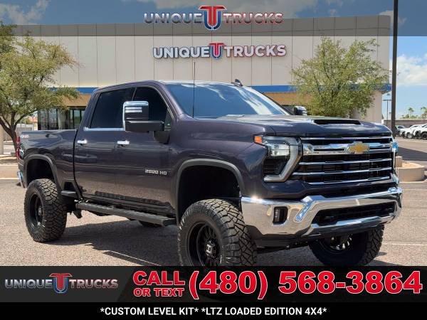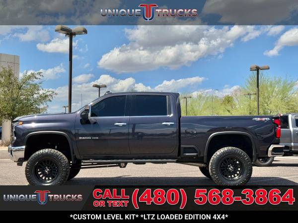 This 2024 Chevrolet Silverado 2500HD LTZ Edition 4x4 Crew Cab is one of the cleanest and sharpest trucks on the road right now. Covered in the deep and sleek Dark Ash Metallic paint and matched with a clean Jet Black leather interior, this truck grabs attention everywhere it goes. Sitting just right with a 5" Zone offroad Lift kit with the fox adventure series shocks, this turck offers the hostile wheels with the brand new 37/12.50 20" nitto ridge grappler tires. Under the hood is the powerful and proven Duramax 6.6-liter Turbo Diesel engine paired with the smooth and strong Allison 10-speed automatic transmission. This combo is known for its performance and pulling strength. Whether you’re hauling a trailer, loading up gear, or just cruising around town, this setup handles it all with ease. This truck runs strong and smooth with every turn of the key.The inside of this Silverado 2500HD is built for both comfort and function. It features dual zone climate control, heated front seats, 10-way power seats, and a 60/40 split rear seat with extra storage. The front 40/20/40 bench seat with underseat space gives you the choice of more seating or more room. The heated, leather-wrapped steering wheel with audio controls feels just right in your hands, and the rubber floor mats help keep the inside clean no matter what the day brings.This truck comes with all the modern tech you’d want. It includes Chevy Infotainment 3 Premium, a big 13.4-inch color touchscreen, Google built-in compatibility, and wireless Apple CarPlay and Android Auto. There's also Bluetooth, SiriusXM radio, and multiple power outlets, including a 120V outlet in the cargo bed. You also get a clear and sharp 12.3-inch digital driver display to keep track of everything at a glance.Safety is a big deal in this Silverado. It has Automatic Emergency Braking, Forward Collision Alert, Front Pedestrian Braking, Lane Departure Warning, Following Distance Indicator, Teen Driver mode, and IntelliBeam headlamps. You also get a HD rear vision camera and the Buckle to Drive system, which adds peace of mind every time you’re on the road. It’s built to keep you safe without making it complicated.On the outside, this Silverado shows off with animated LED headlights, LED fog lamps, and LED daytime running lights that light up clean and bright. The EZ lift tailgate with power lock and release, CornerStep rear bumper, and rear wheelhouse liners make loading up and cleaning off a breeze. Heated, power adjustable trailering mirrors and front recovery hooks are ready when the job gets serious.Performance doesn’t stop at the engine. This truck is built with auto-locking rear diff, Autotrac transfer case, multi-leaf rear suspension, independent front suspension, and digital variable steering assist. It also includes the full trailering package, trailer brake controller, and hitch guidance so you’re ready to pull with confidence.Inside and out, this truck is absolutely clean and in immaculate condition. Every button, every switch, every surface looks and feels like new. It’s hard to find a leveled truck that looks this good, rides this nice, and is still ready for work. If you’re shopping for Ford trucks or anything in the same class, this Silverado gives you a real reason to look twice.If you’ve been waiting for a truck that checks every box—looks, space, power, and style—this might be the one. And with our No Obligation Delivery Service, it’s easier than ever to buy. You can make your best deal over the phone, and we’ll bring this clean 2024 Chevrolet Silverado 2500HD 4x4 Crew Cab straight to your driveway. Take it for a test drive at your own home. No pressure, no games—if you don’t like it, you don’t buy it. That’s the Unique Trucks way to buy: straightforward, easy, and all about you.This Silverado is fully ready to go. From the clean exterior to the sharp interior, from the powerful Duramax diesel to the loaded feature list, this truck is ready to do it all. If you want a truck that looks great and works hard, this one’s it. Clean, strong, and smooth—just the way a top-level truck should be. ____________________________ 2024* 2025* CHEVROLET* CHEVY* SILVERADO* CHEVY TRUCKS* DIESEL TRUCKS* LIFTED TRUCKS* CHEVY TRUCKS* 2500HD* 3500HD* LTZ* LTZ LOADED* LEATHER* 4X4* 4WD* DIESEL TRUCKS* SILVERADO* DURAMAX* DIESEL* ALLISON TRANSMISSION* LEVEL TRUCKS* LOW MILES* LOW MILEAGE* RELIABLE*